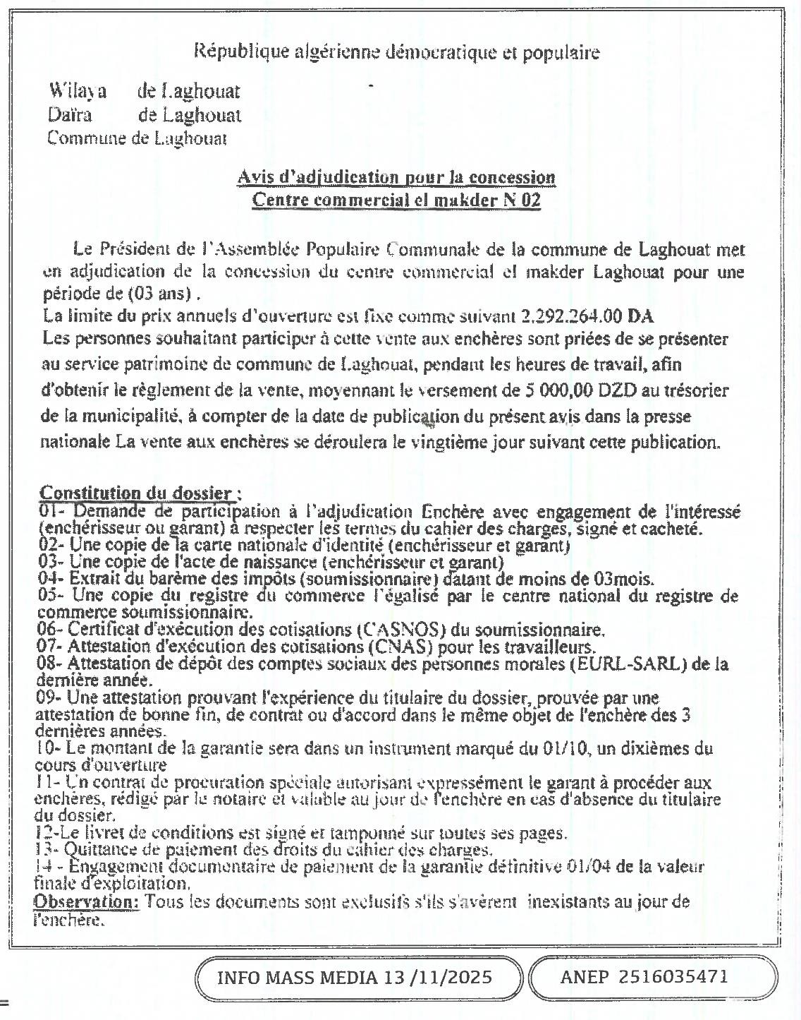 APC DE LAGHOUAT WILAYA DE LAGHOUAT