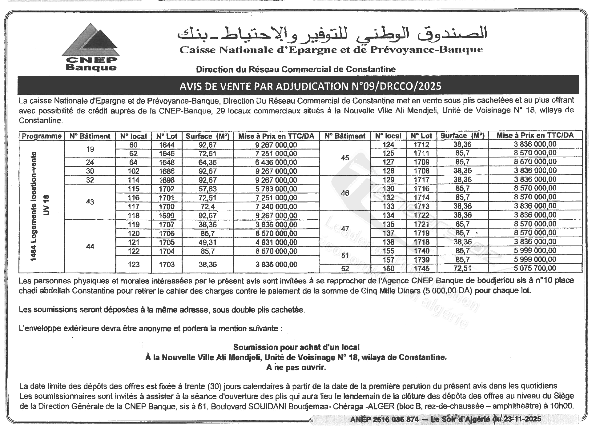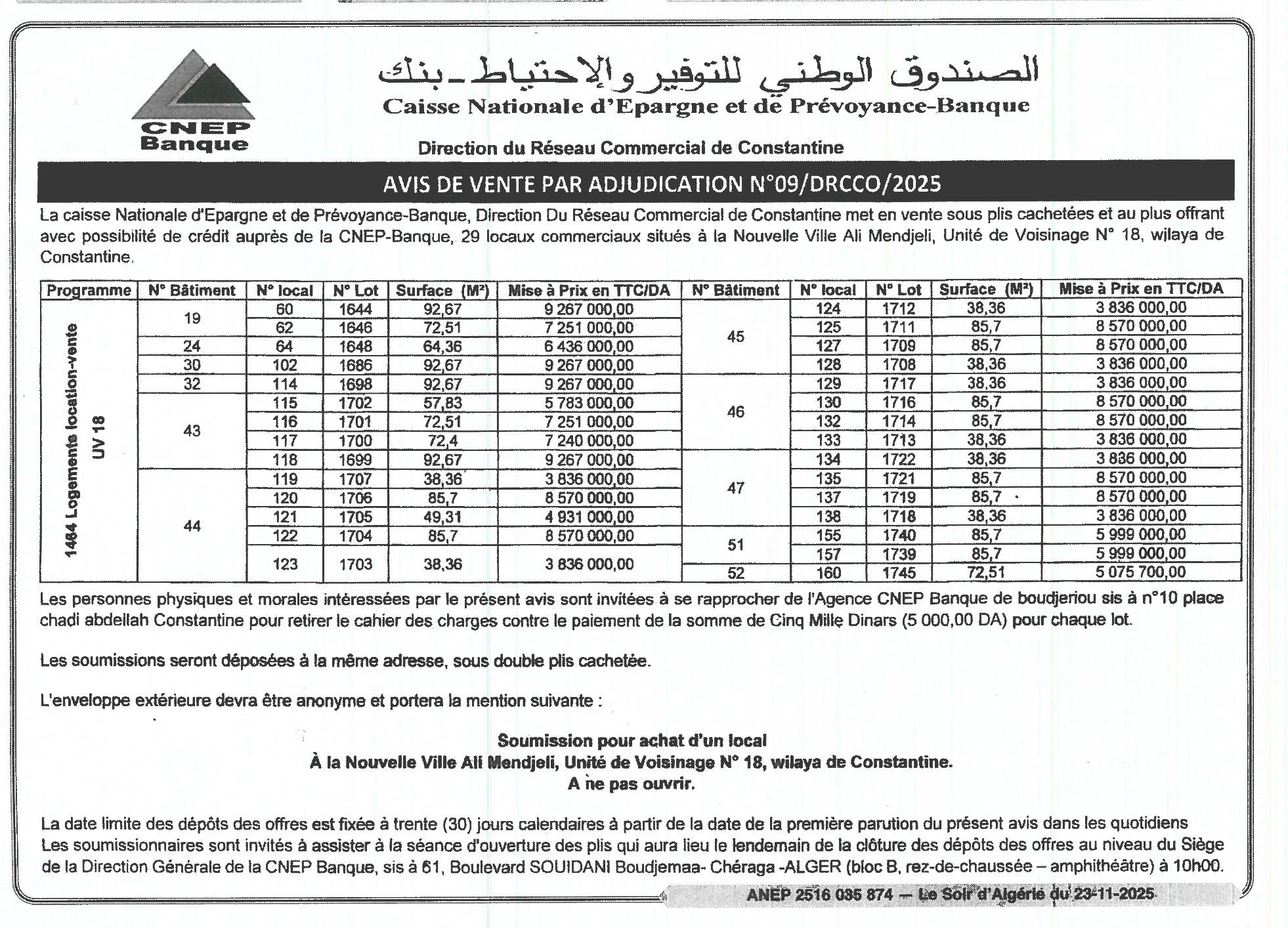 CNEP BANQUE/ RESEAU COMMERCIAL DE CONSTANTINE
