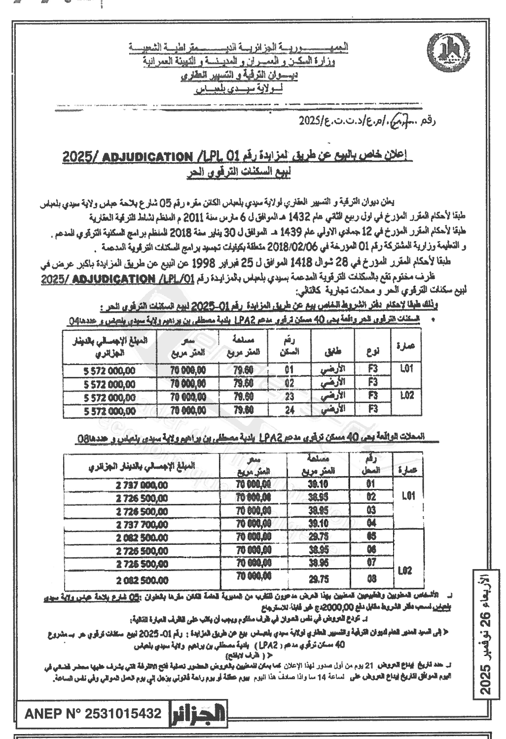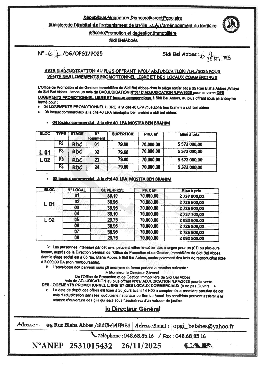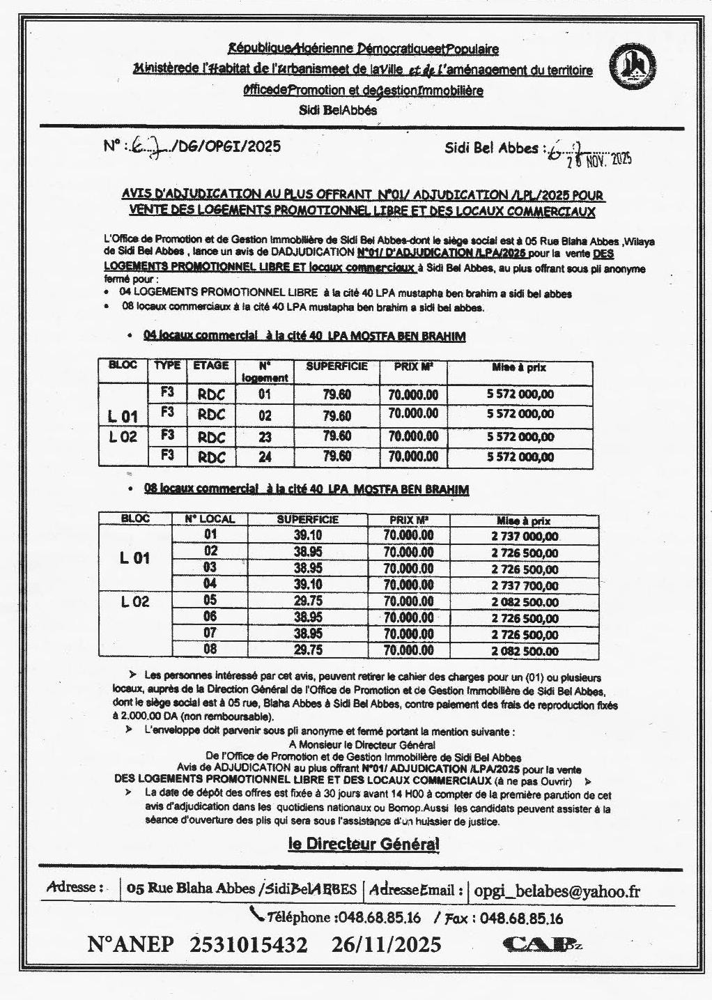 OPGI WILAYA DE SIDI BEL ABBES (OFFICE DE PROMOTION ET DE GESTION IMMOBILIERE)