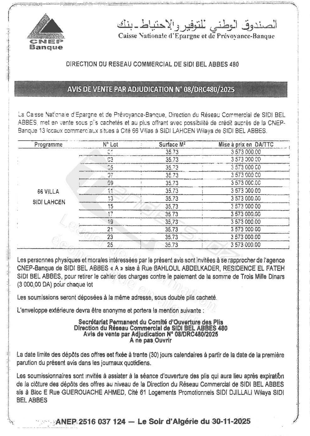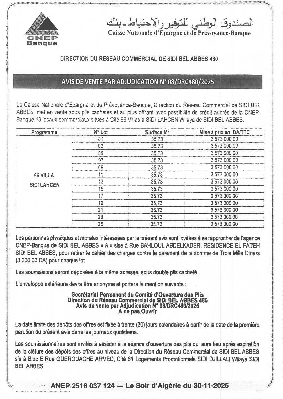 CNEP BANQUE / RESEAU COMMERCIALE DE SIDI BEL ABBES