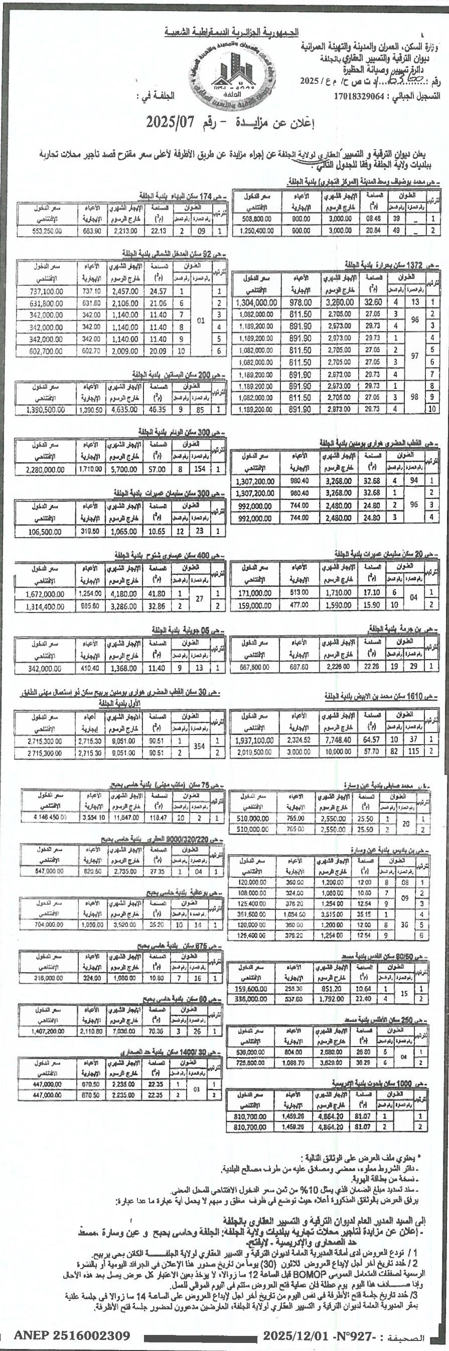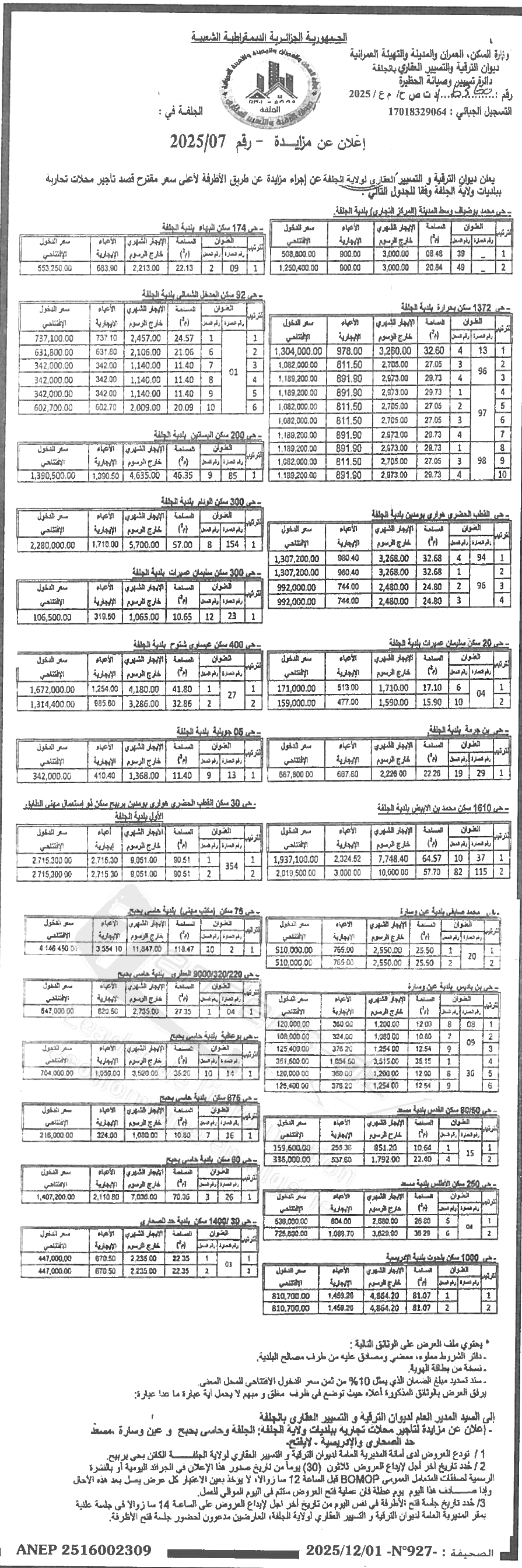 OPGI WILAYA DE DJELFA (OFFICE DE PROMOTION ET DE GESTION IMMOBILIERE)