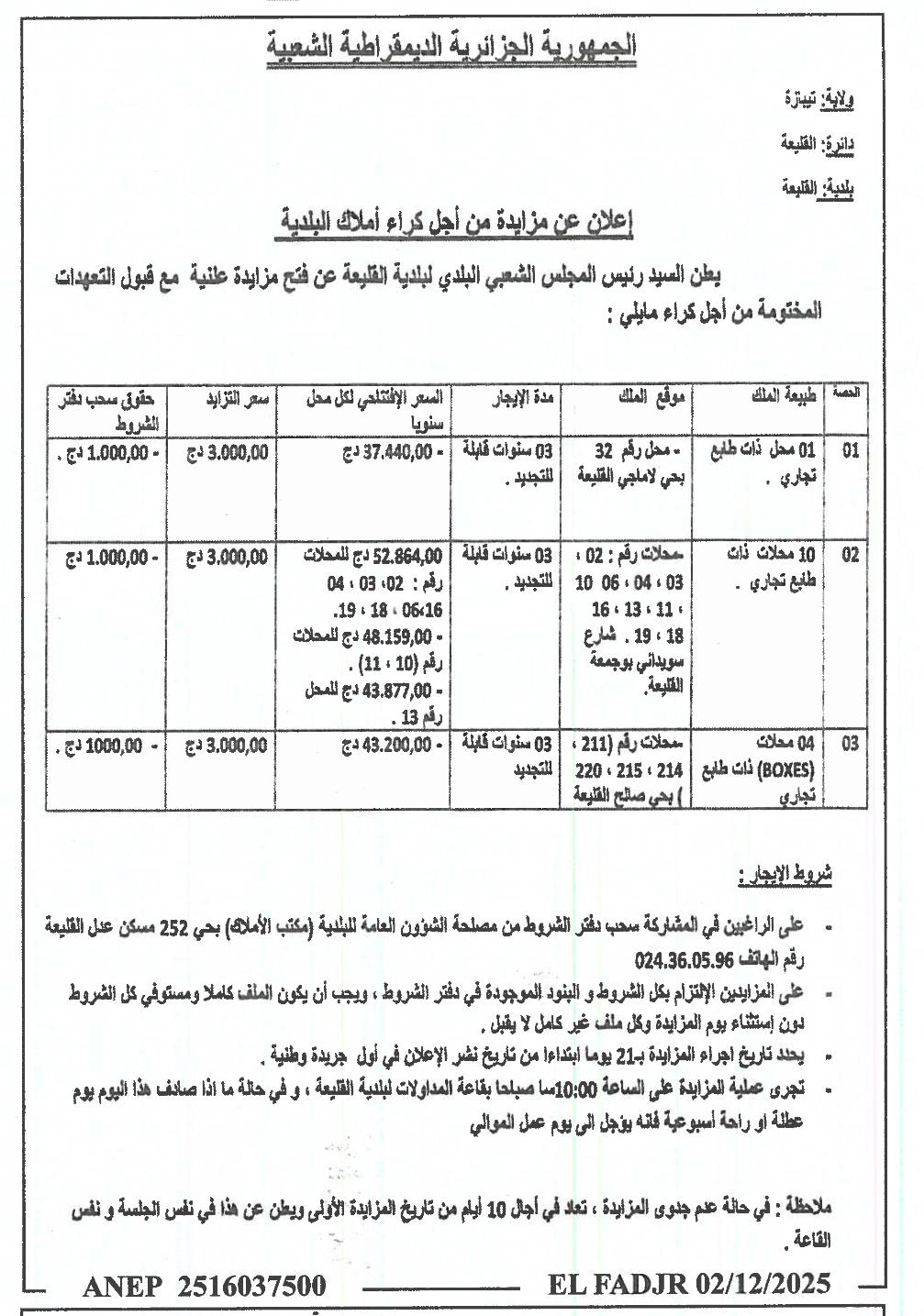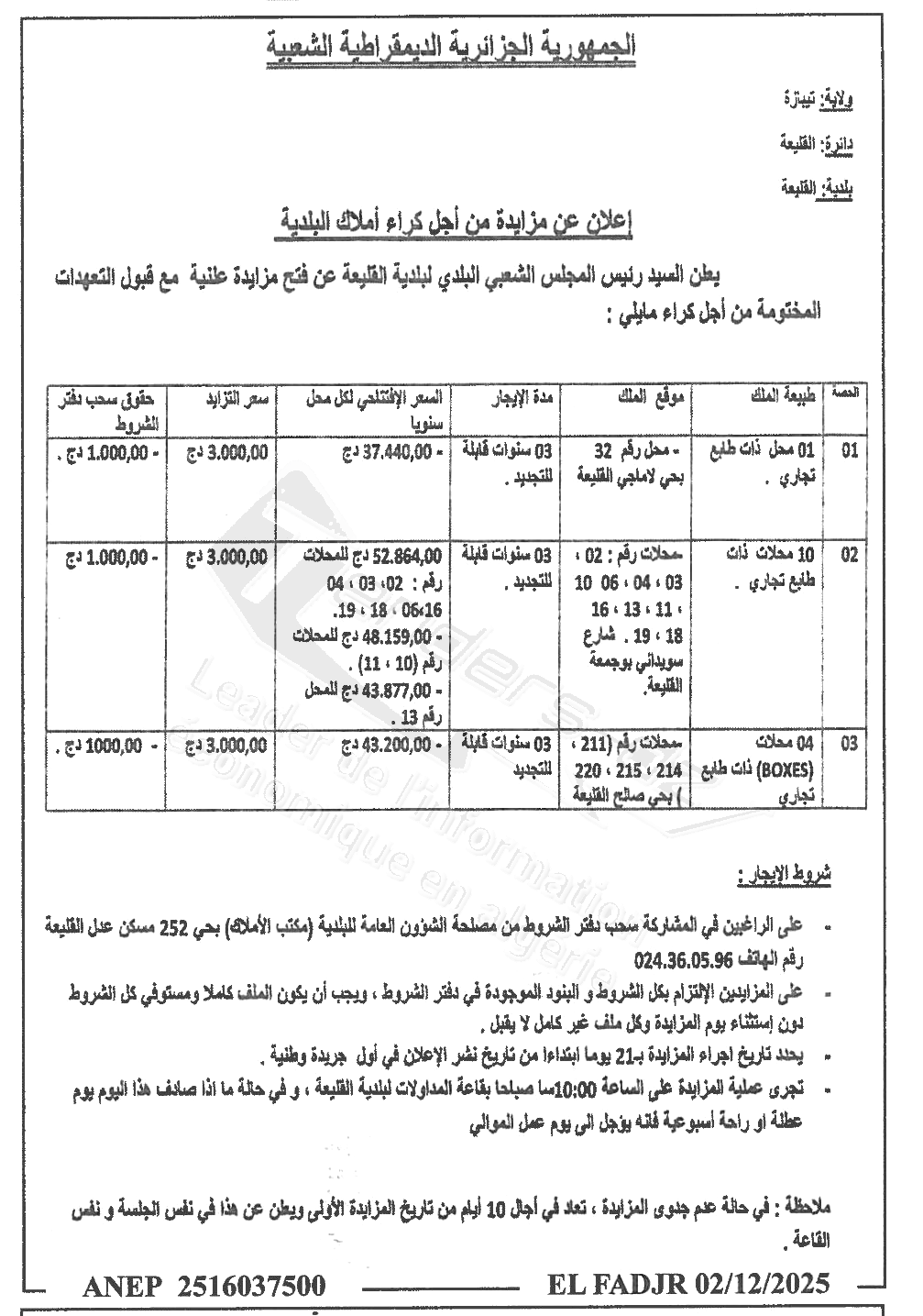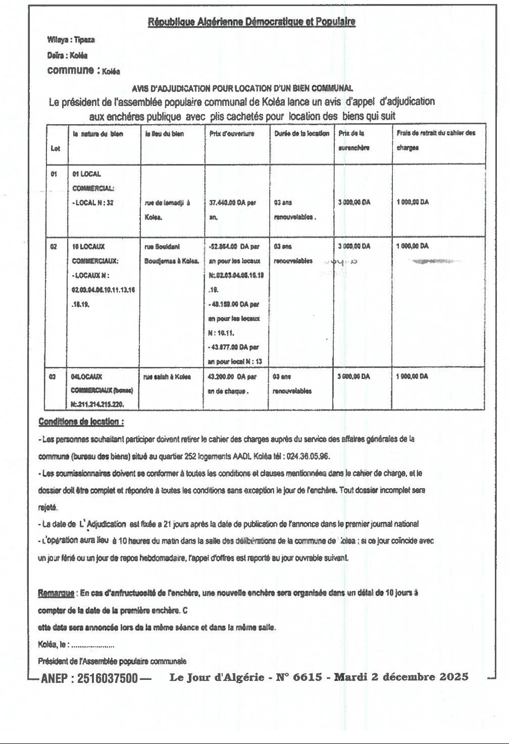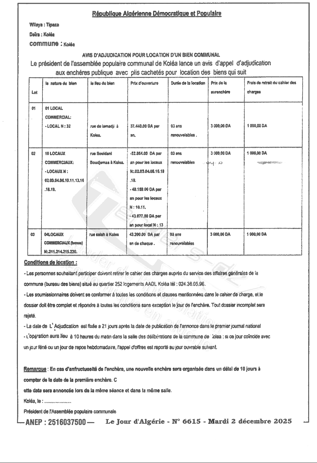 Montant de Retrait du Cahier des Charges : Non Mentionné