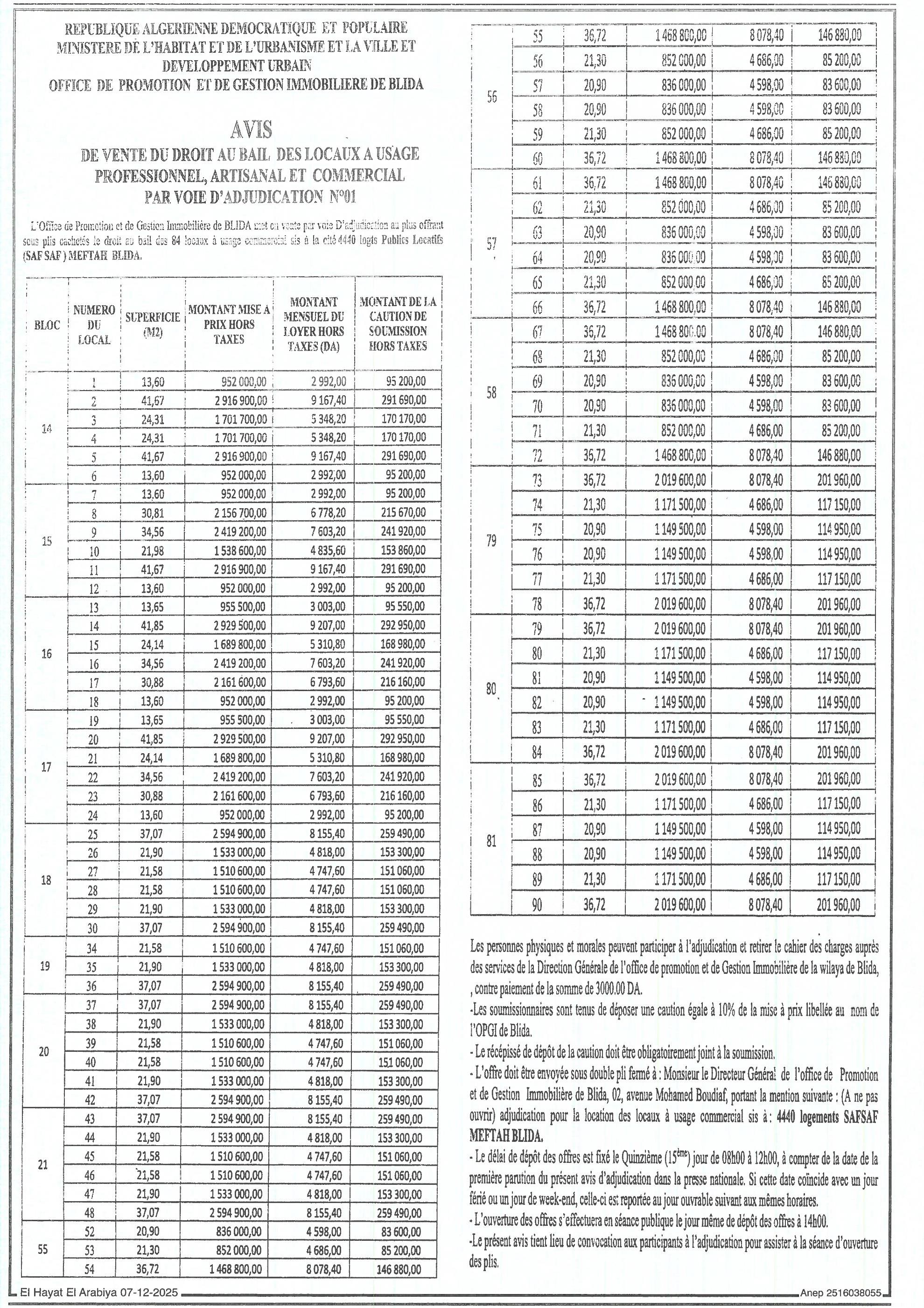 OPGI WILAYA DE BLIDA (OFFICE DE PROMOTION ET DE GESTION IMMOBILIERE)