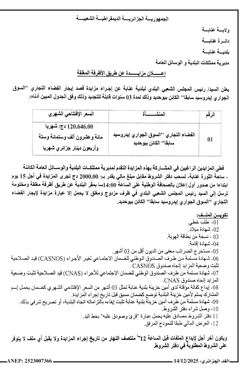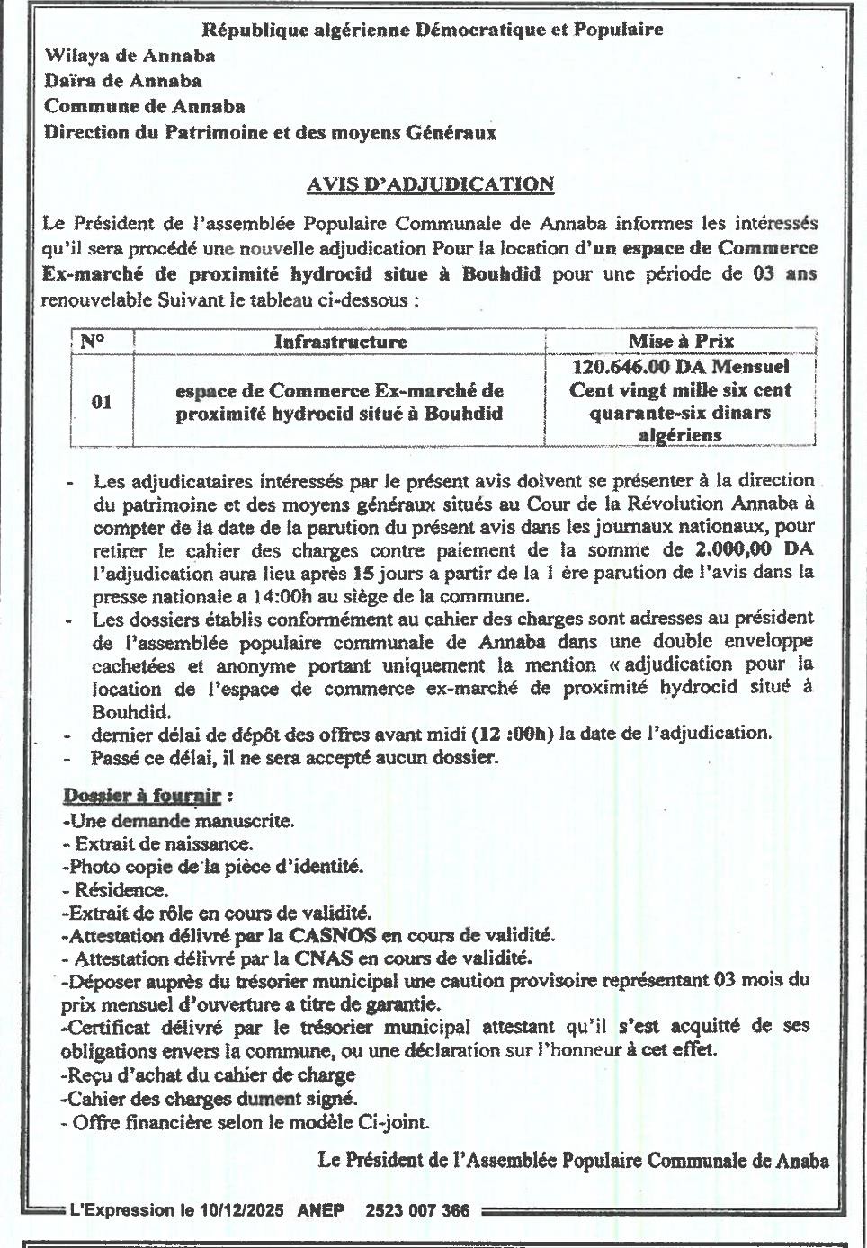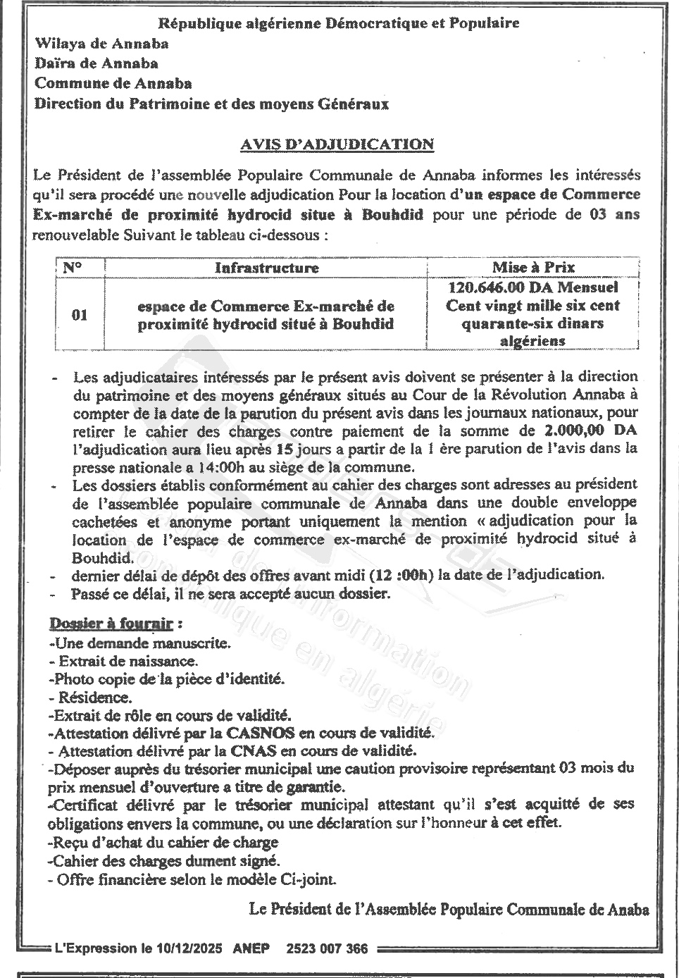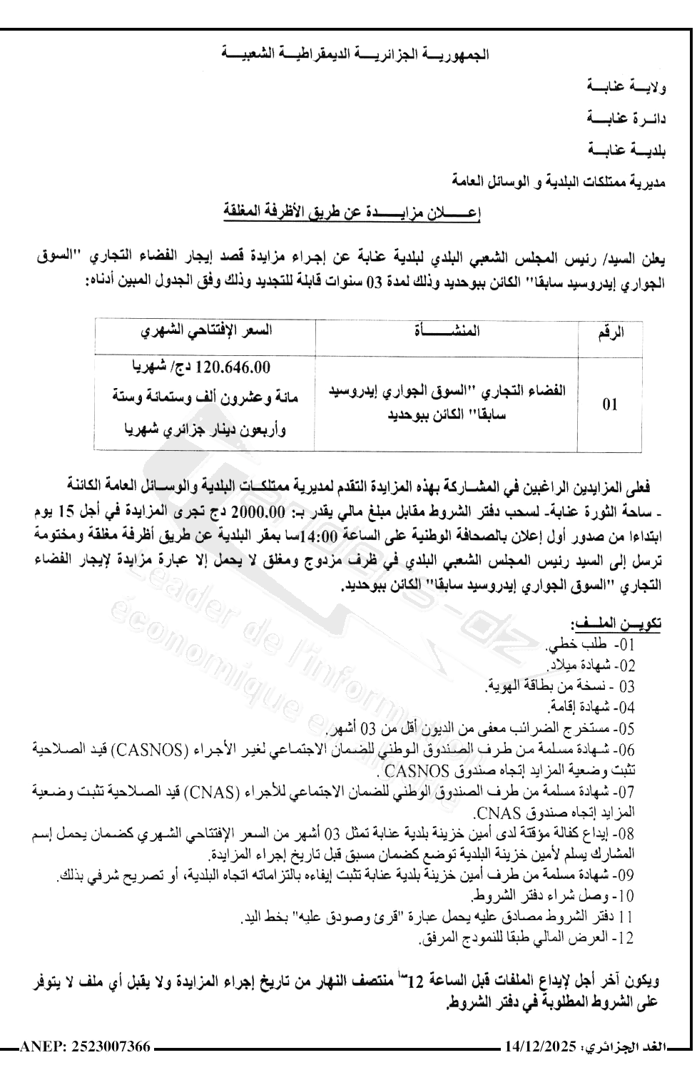 Montant de Retrait du Cahier des Charges : 2.000 00 DA