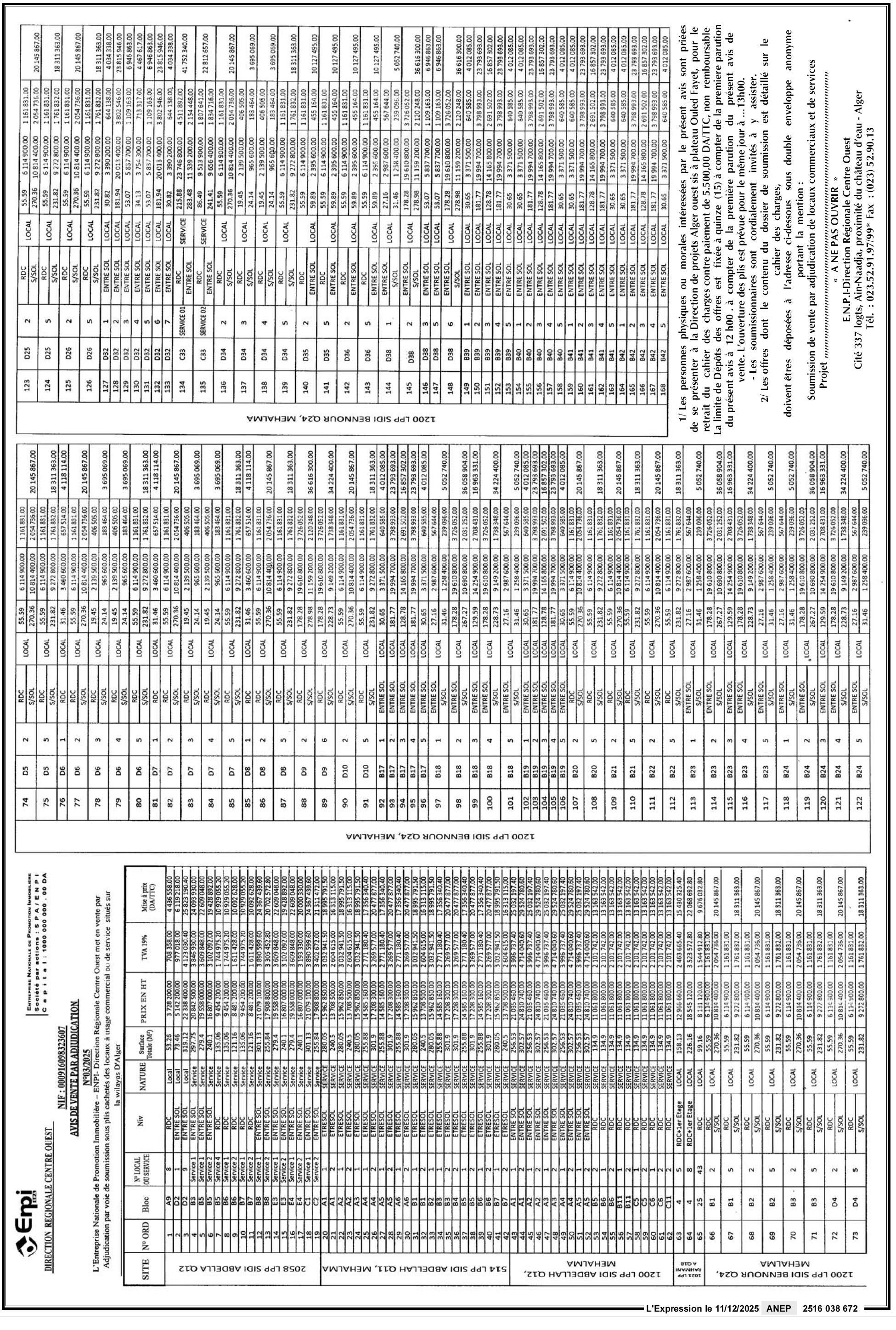 ENPI/ DIRECTION REGIONALE CENTRE OUEST (ENTREPRISE NATIONALE DE PROMOTION IMMOBILIERE)