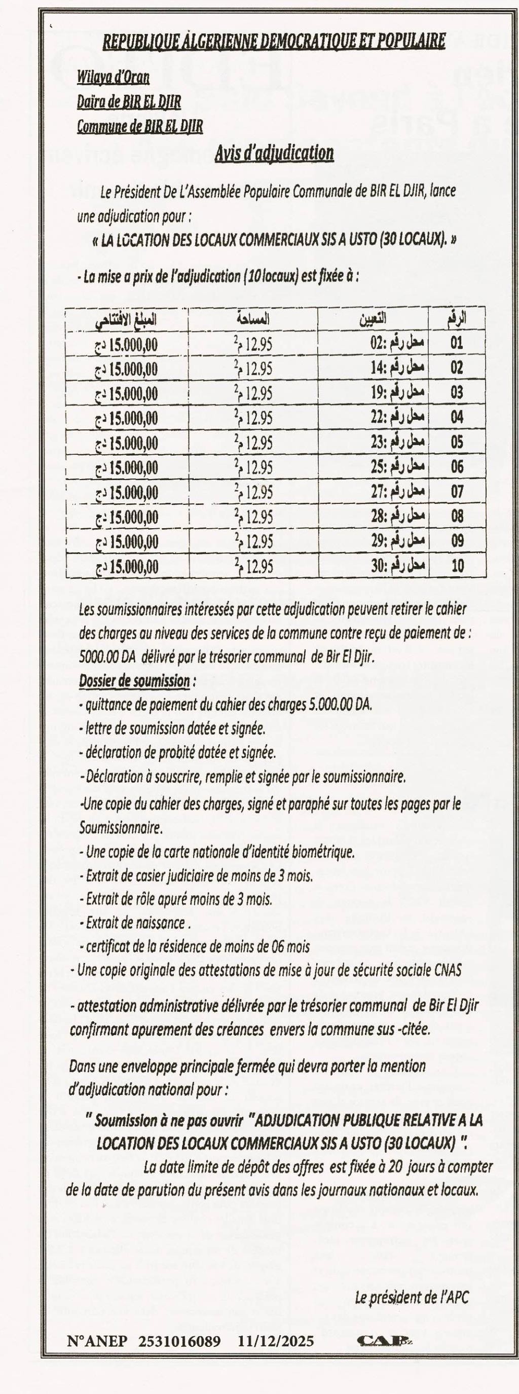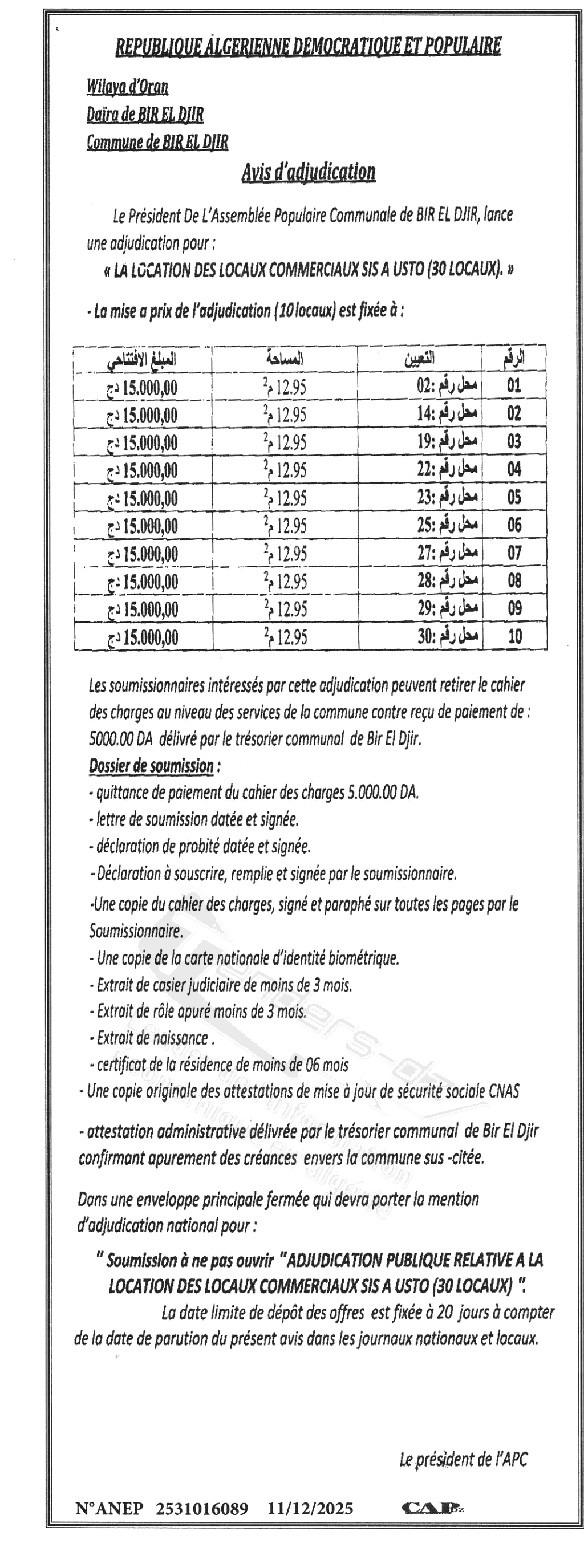 APC DE BIR EL DJIR WILAYA D'ORAN