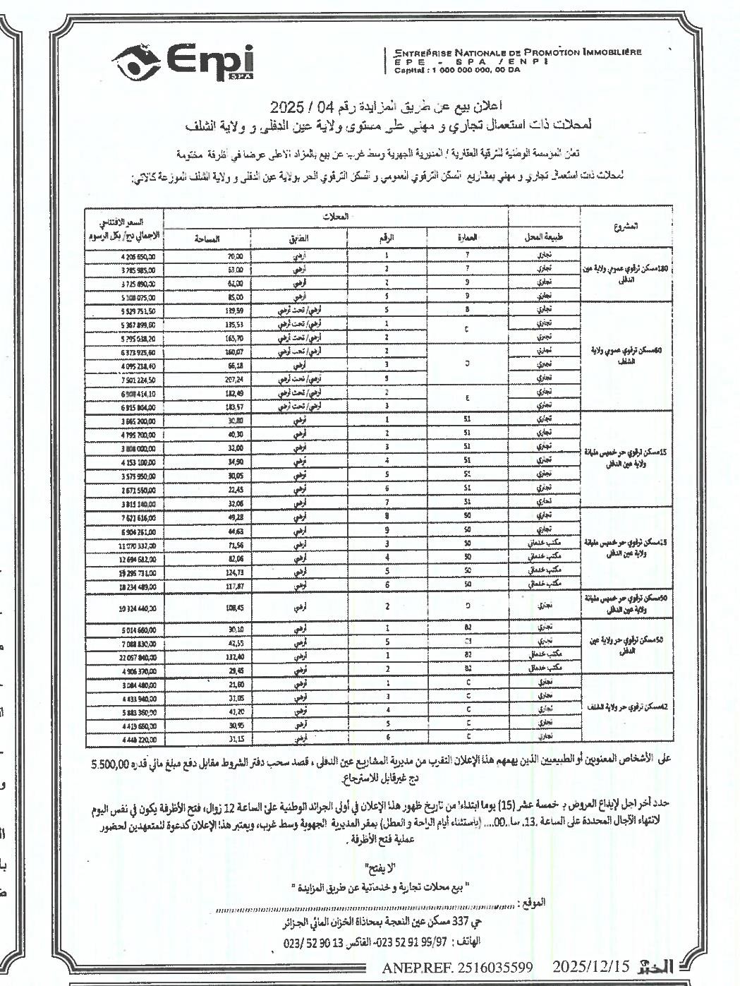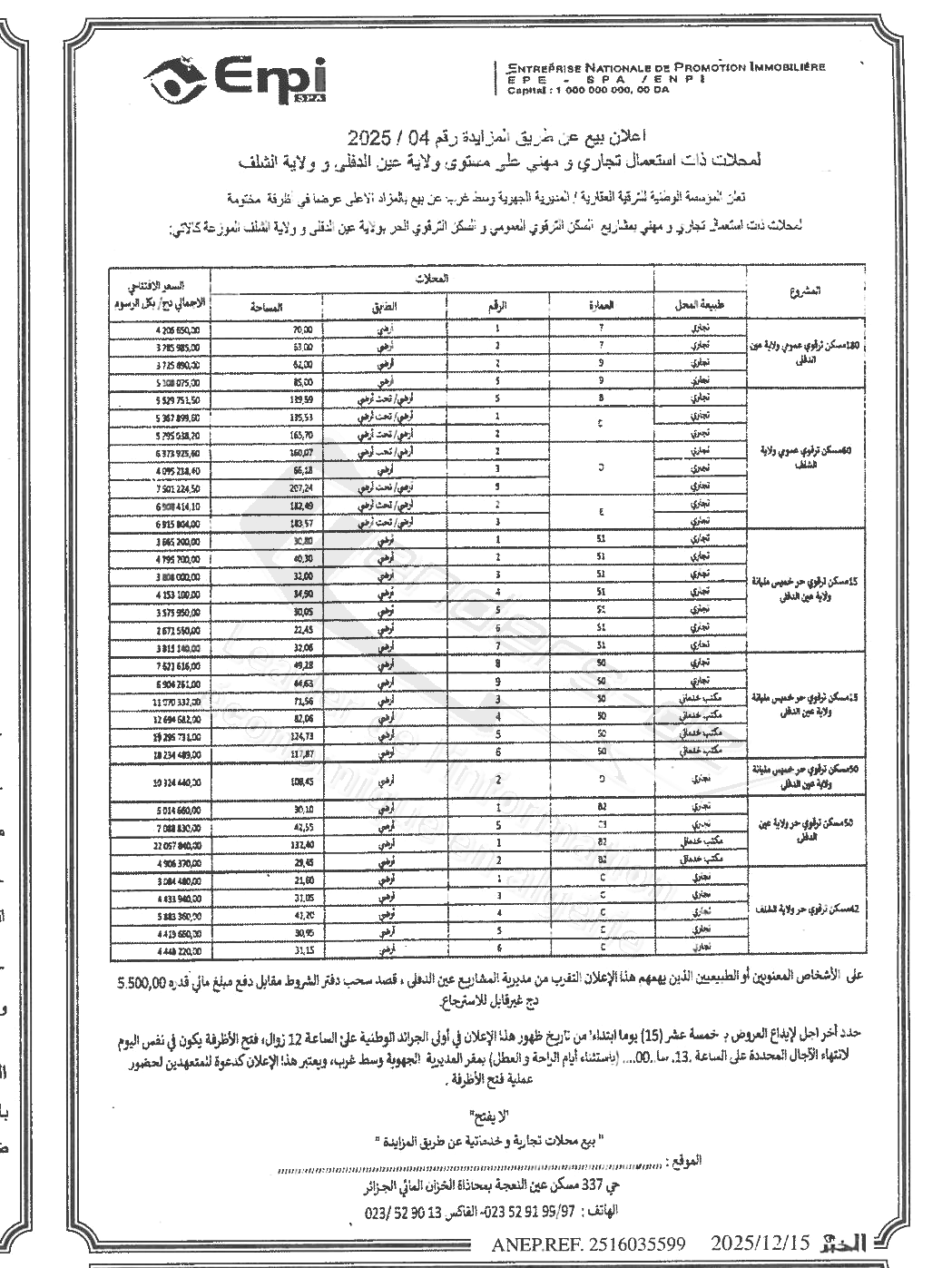 ENPI SPA/ DIRECTION DES PROJETS AIN DEFLA (ENTREPRISE NATIONALE DE PROMOTION IMMOBILIÃÂÃÂRE)