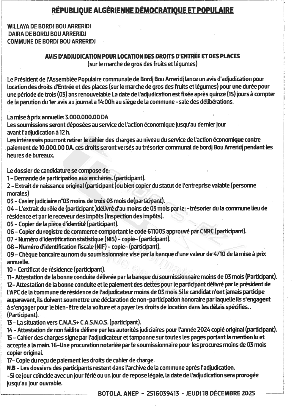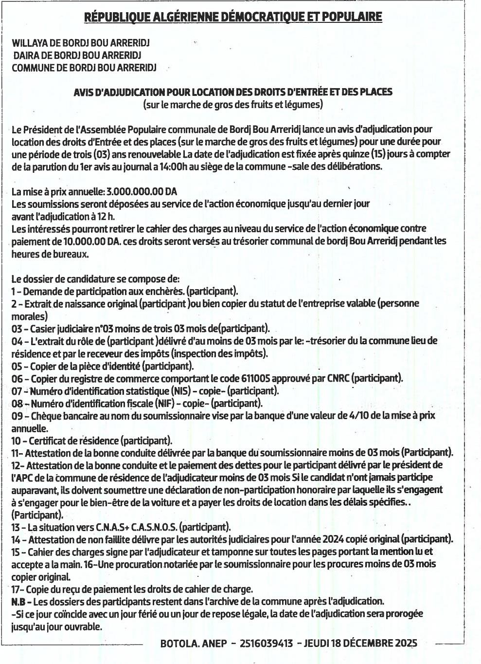 APC DE BORDJ BOU ARRERIDJ WILAYA DE BORDJ BOU ARRERIDJ