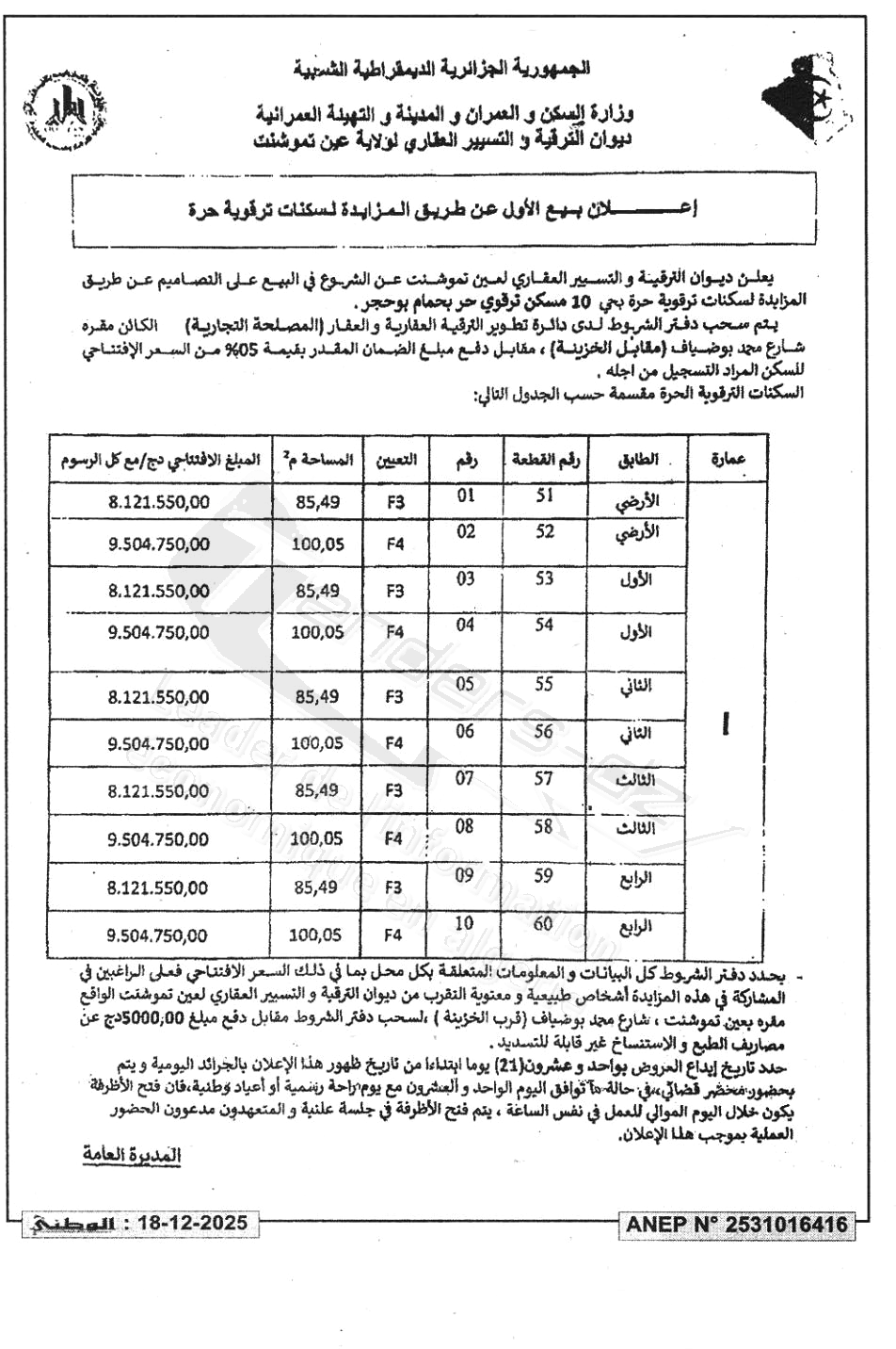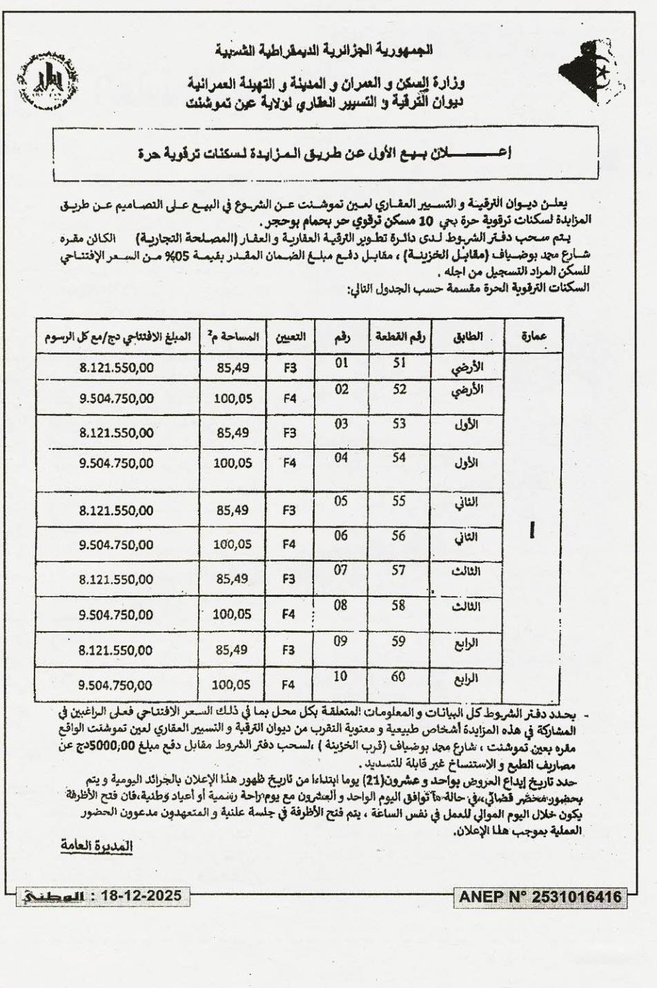OPGI WILAYA D'AIN TEMOUCHENT (OFFICE DE PROMOTION ET DE GESTION IMMOBILIRE)