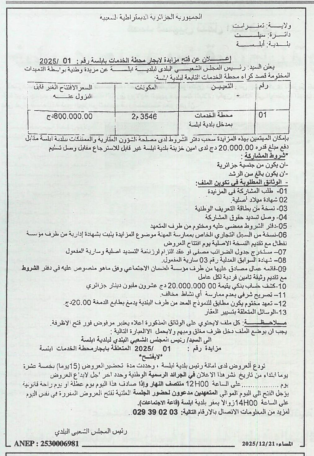 APC D'ABALESSA WILAYA DE TAMANRASSET