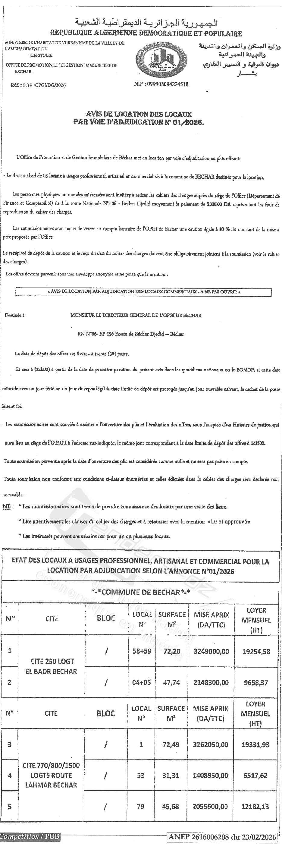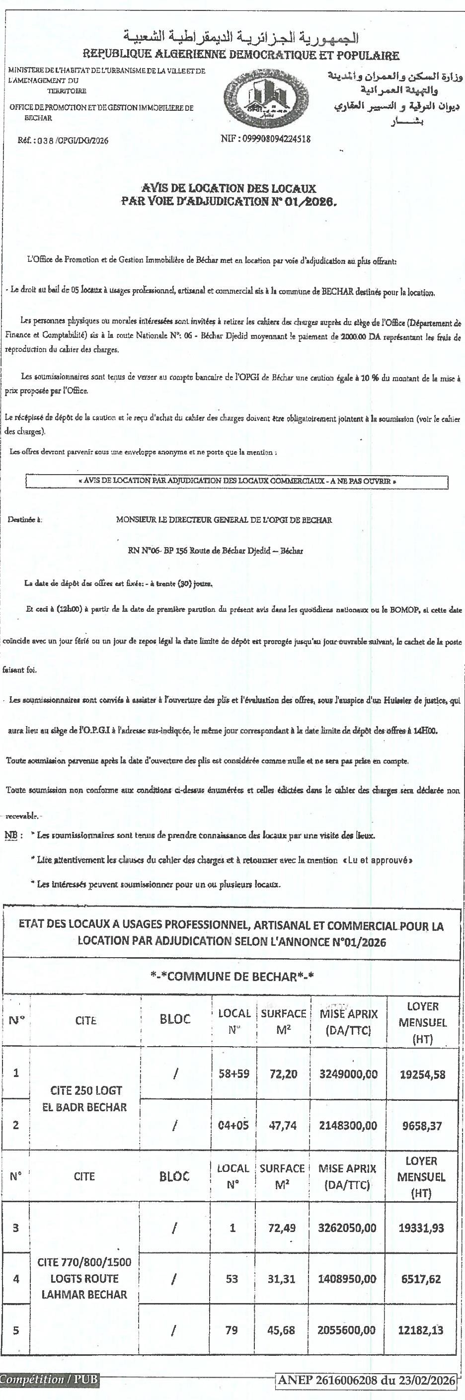 OPGI WILAYA DE BECHAR (OFFICE DE PROMOTION ET DE GESTION IMMOBILIERE)