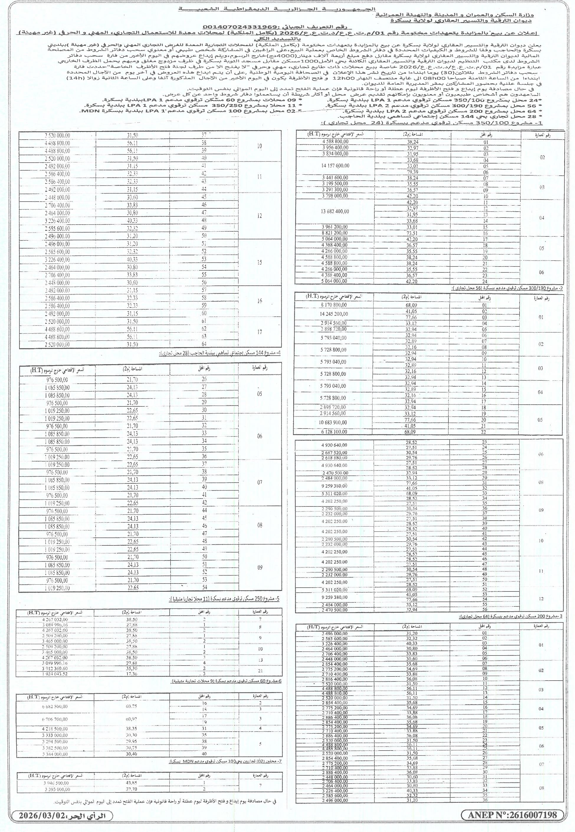 | Organisme : Opgi Wilaya De Biskra (office De Promotion Et De Gestion Immobiliere | |