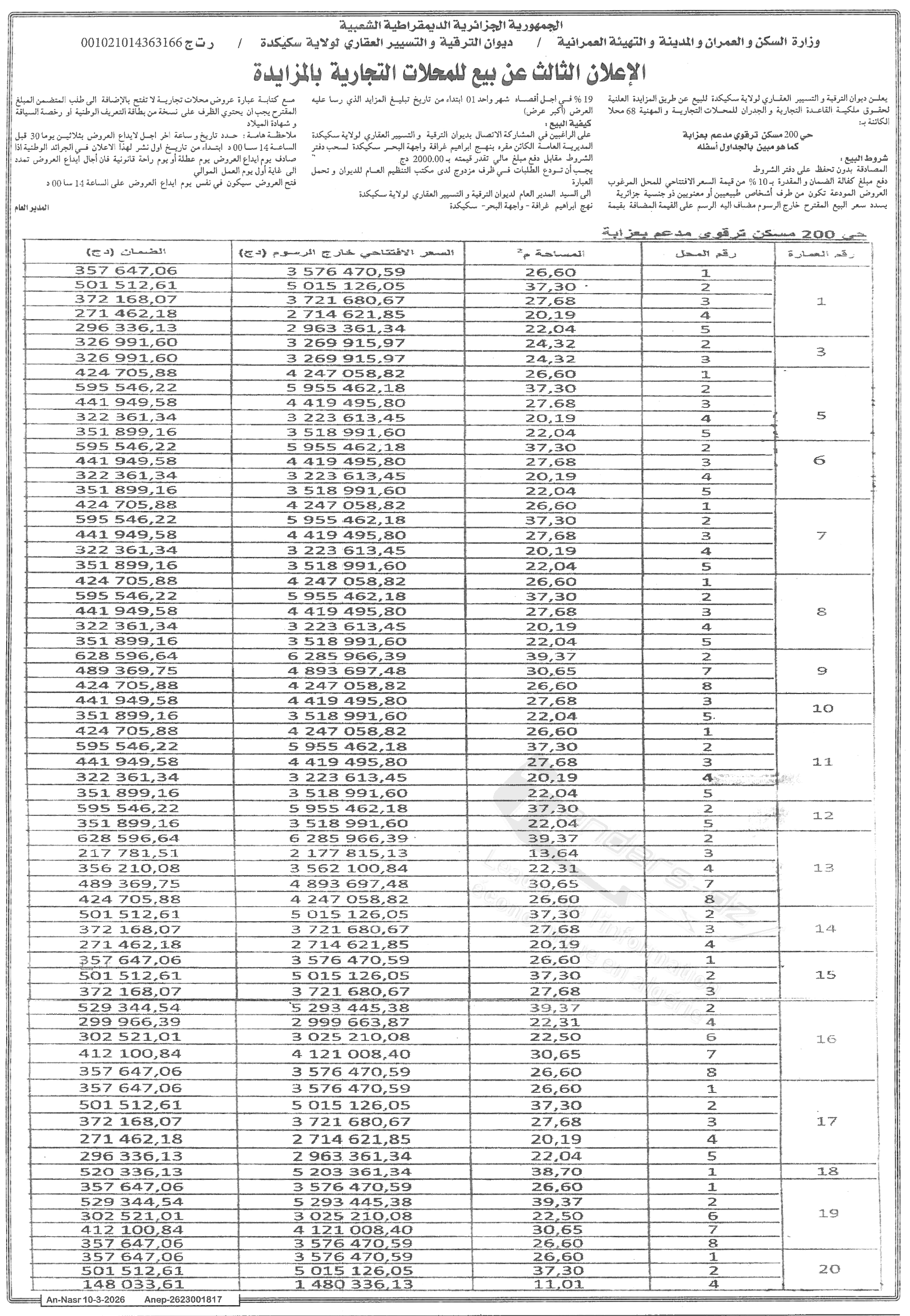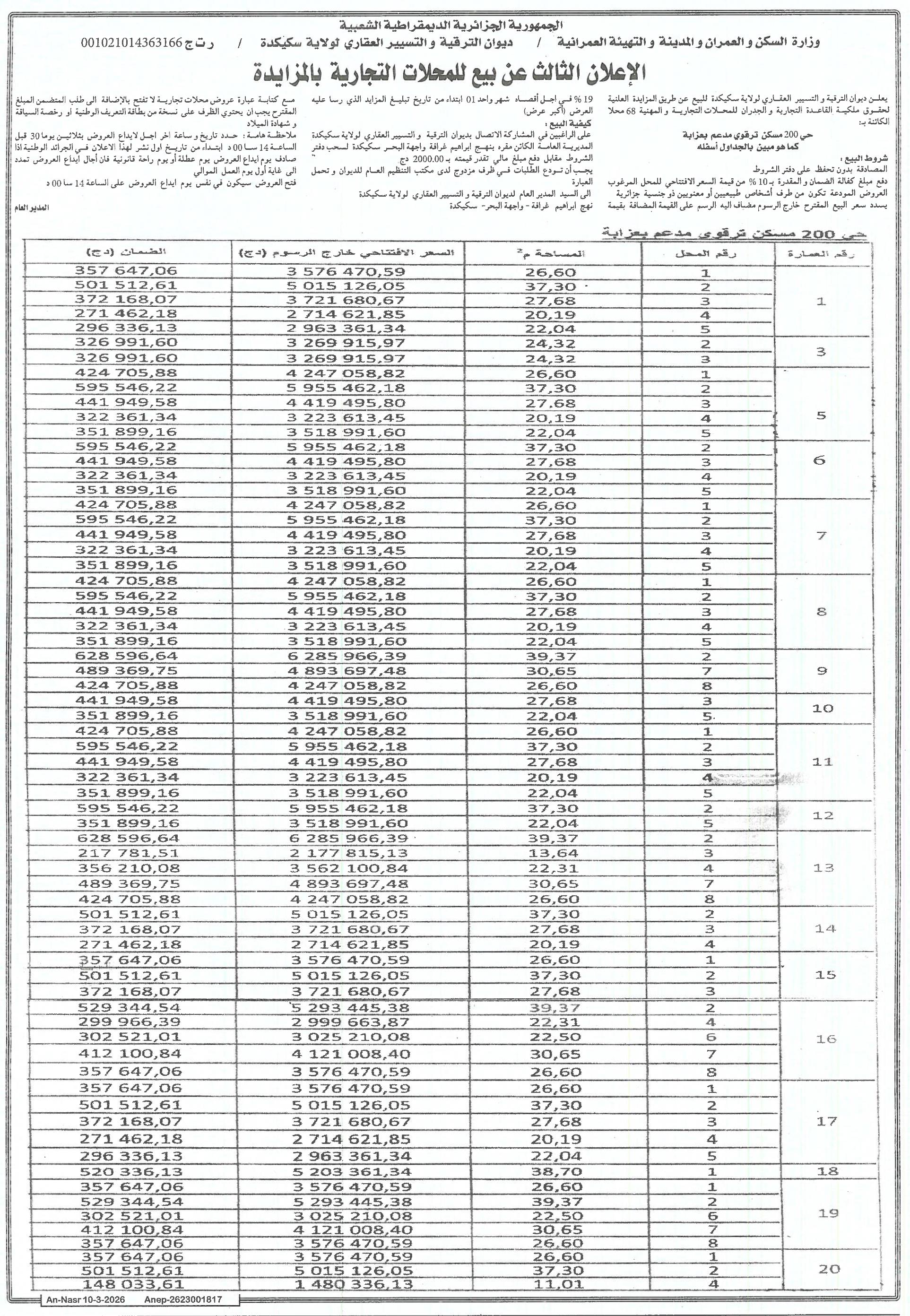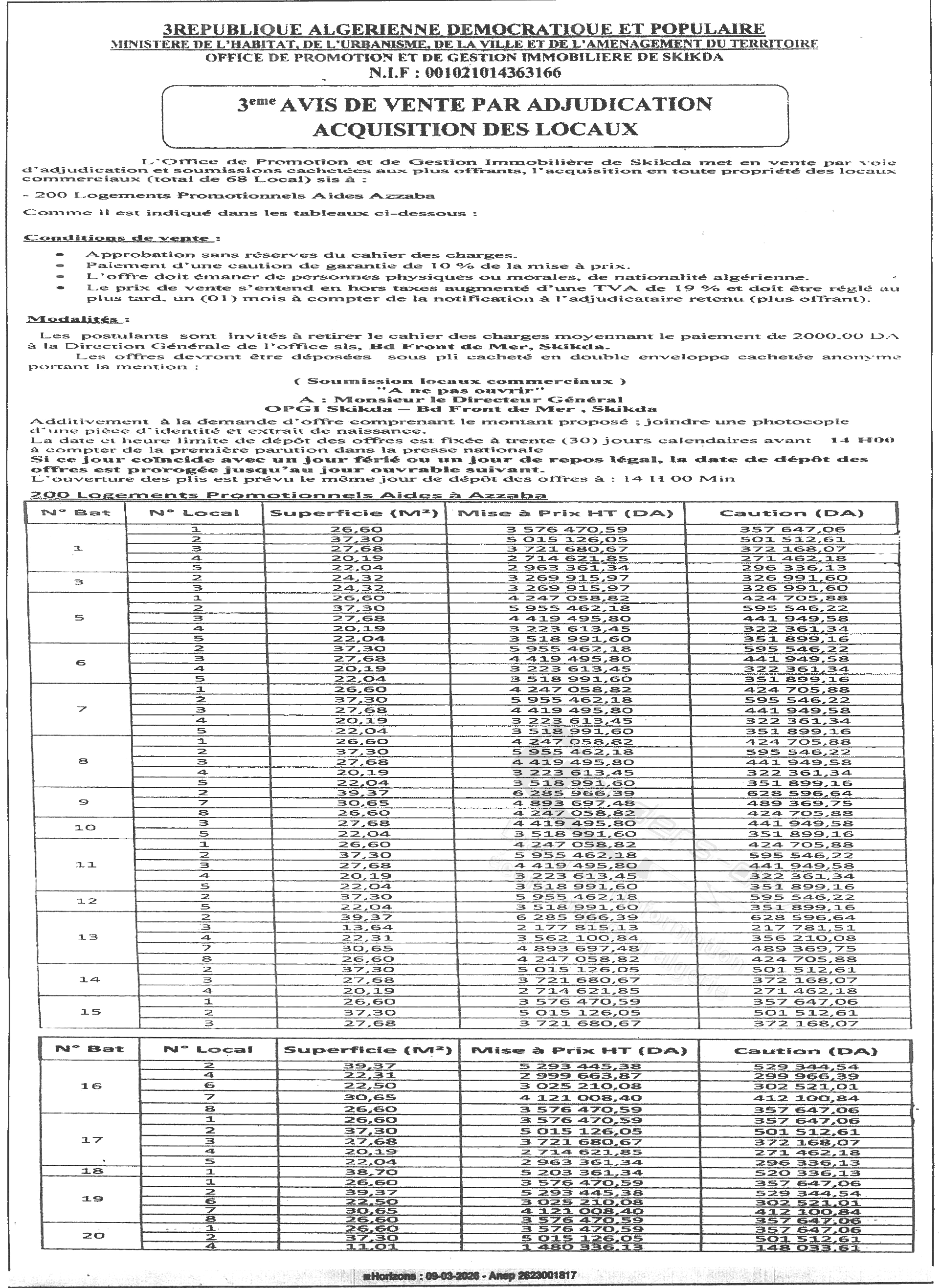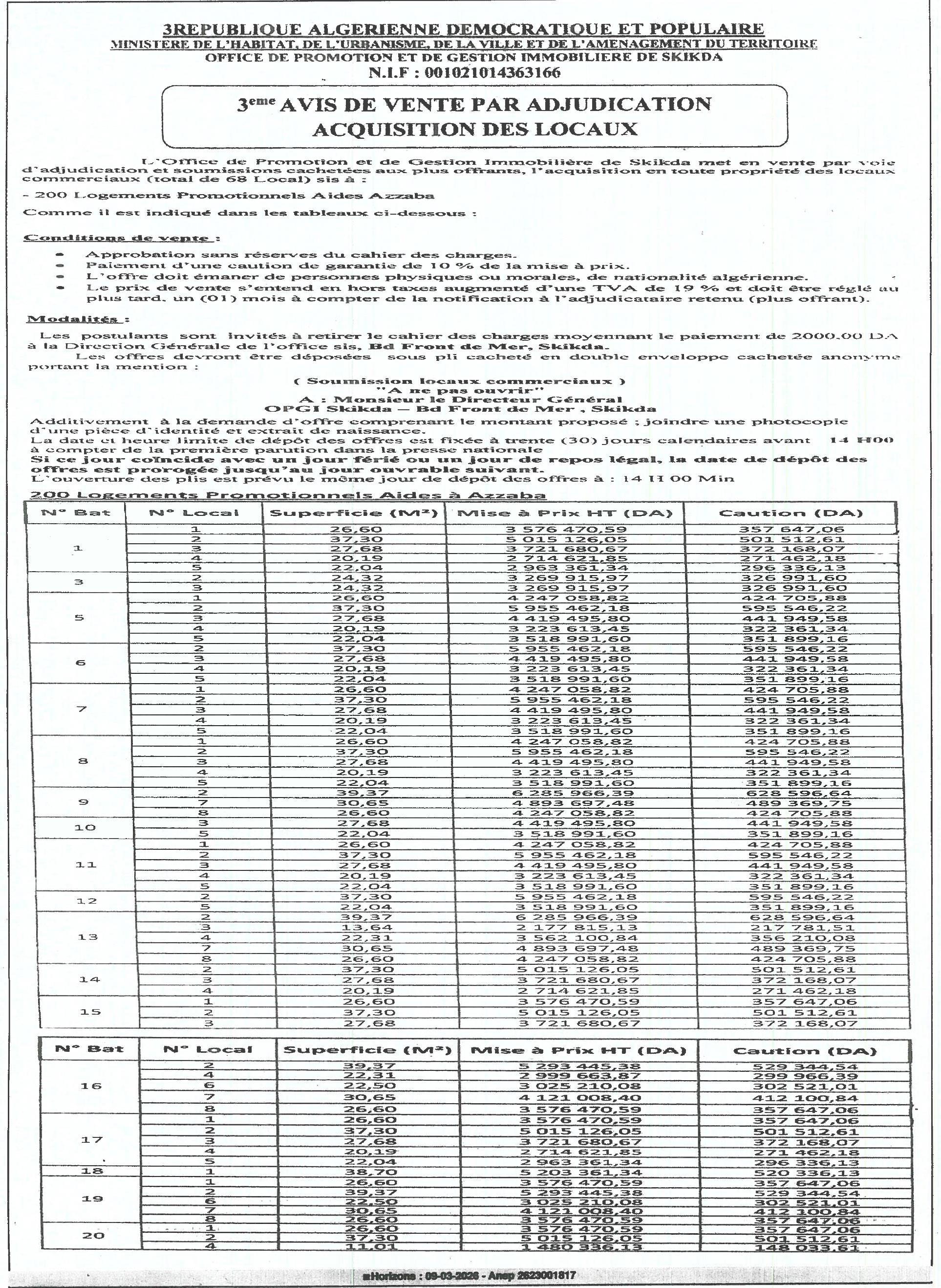 OPGI DE LA WILAYA DE SKIKDA (OFFICE DE PROMOTION ET DE GESTION IMMOBILIERE)