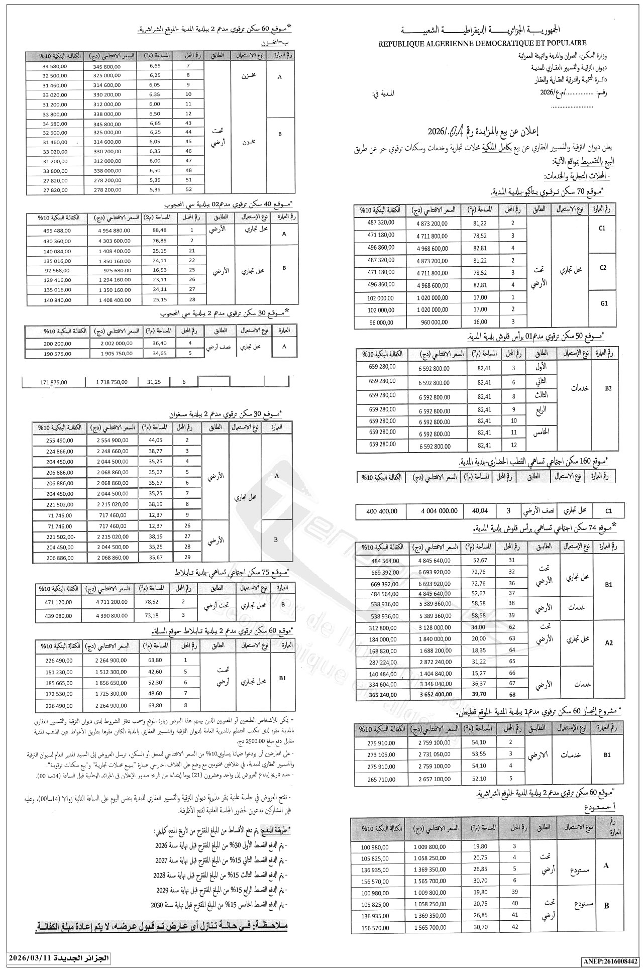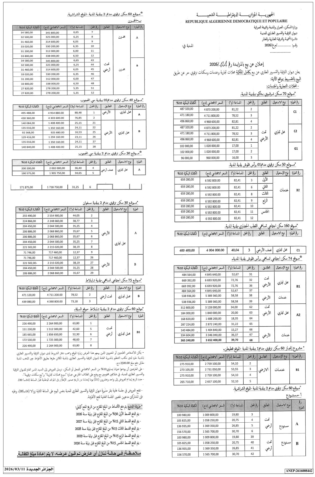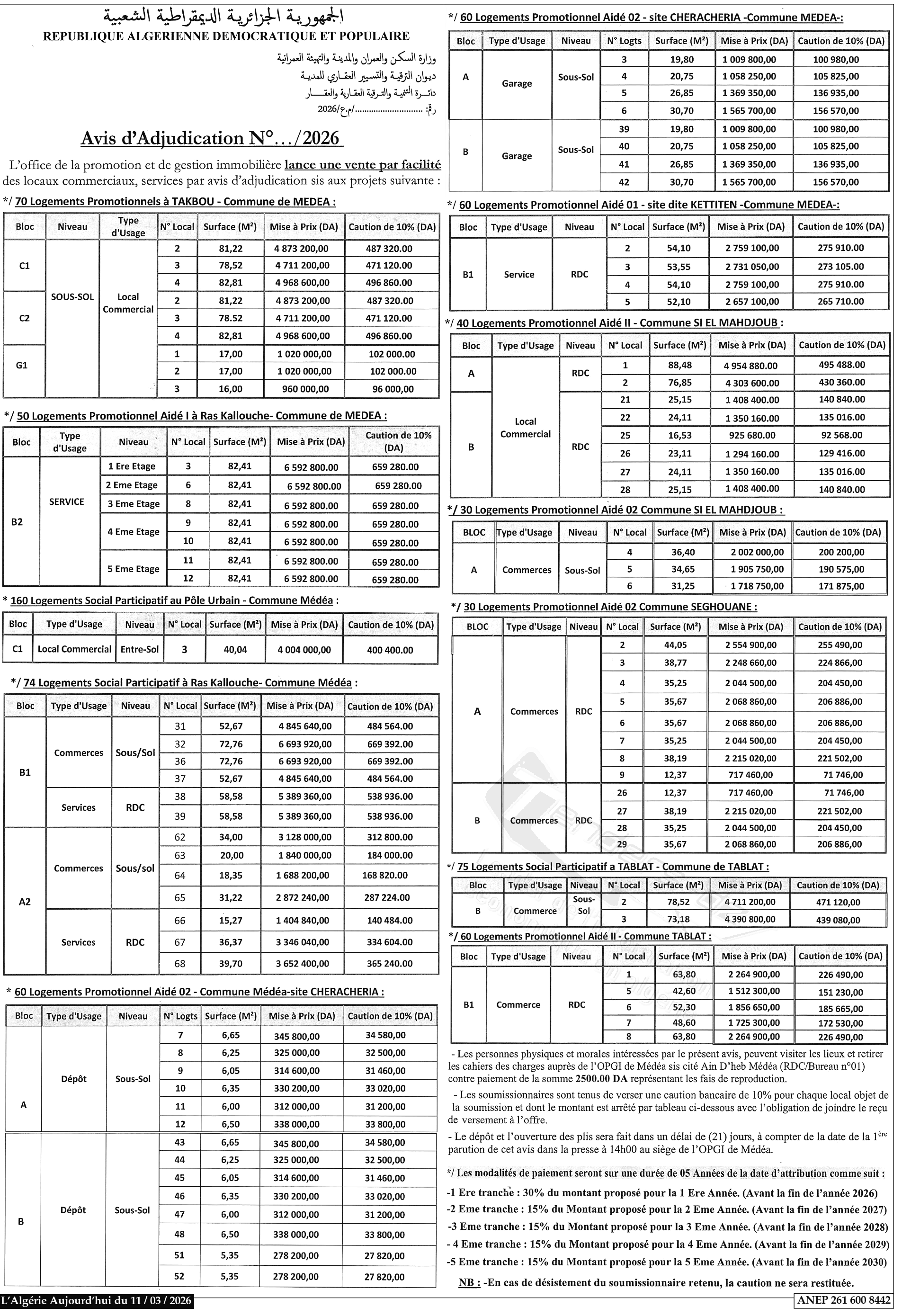 Vente de 70 Logements Promotionnels à TAKBOU - Commune de MEDEA