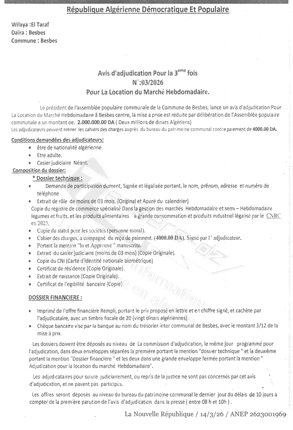 - Commune de Besbes centre wilaya de El Taref