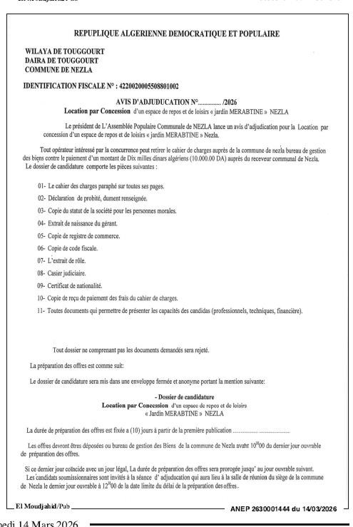 - Journal De Parution: El Moudjahid