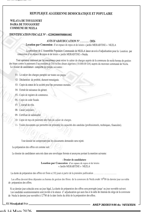 APC DE NEZLA WILAYA TOUGGOURT