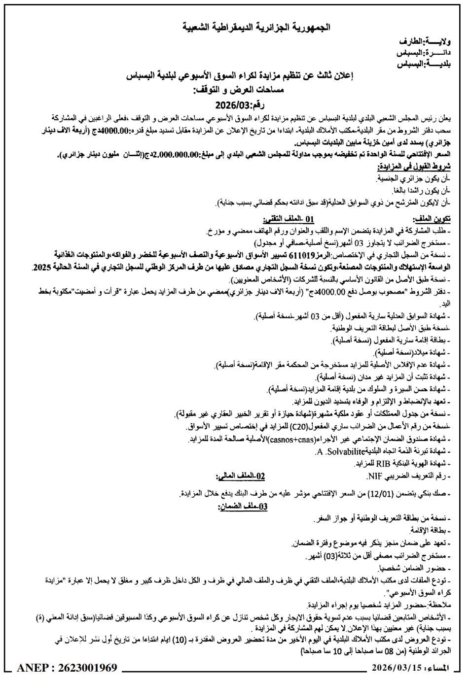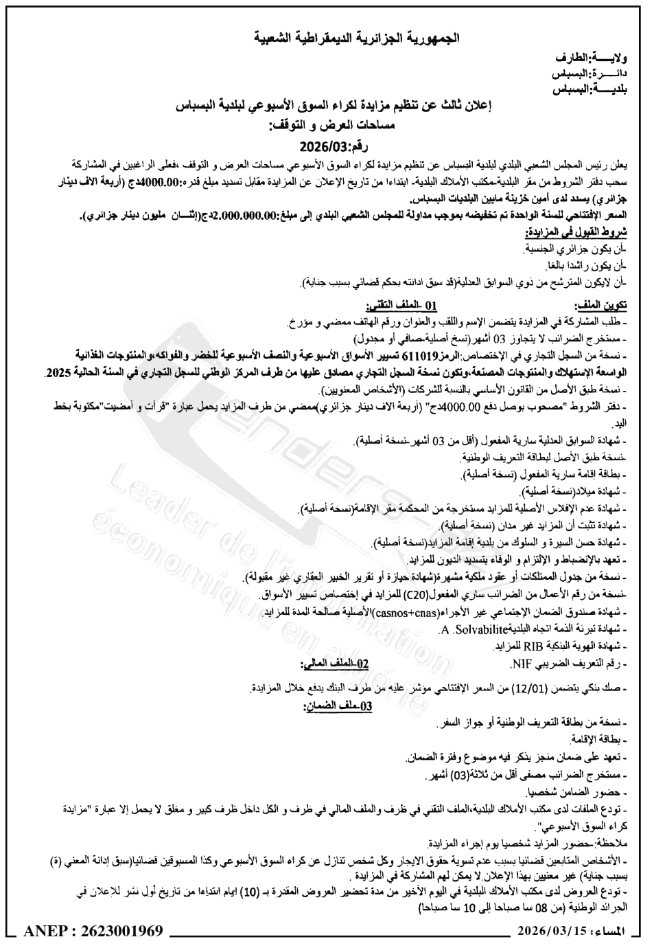 - Date de Publication: 15/03/2026