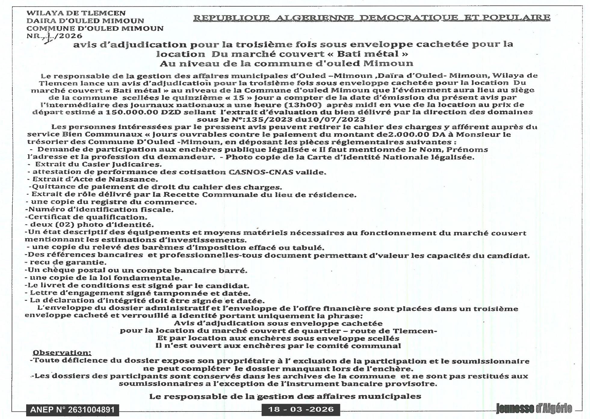 APC D'OULED MIMOUN WILAYA DE TLEMCEN