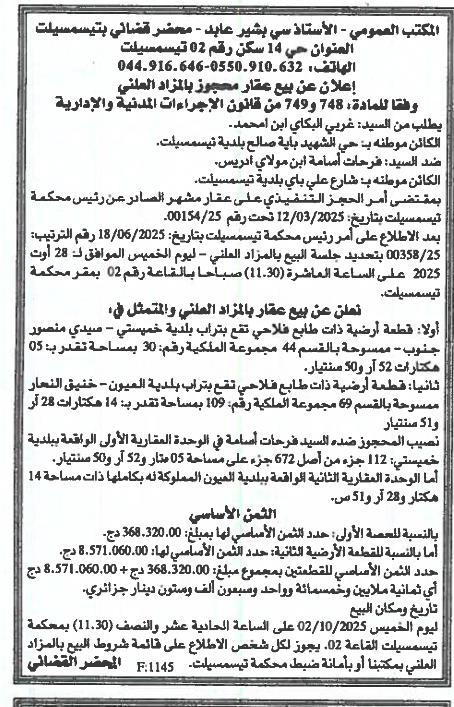 Il sera procédé à la vente au plus offrant et dernier enchérisseur le :