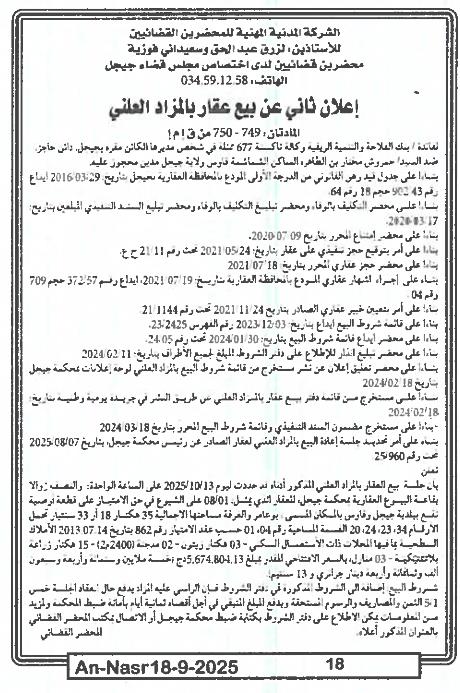 Il sera procédé à la vente au plus offrant et dernier enchérisseur le :