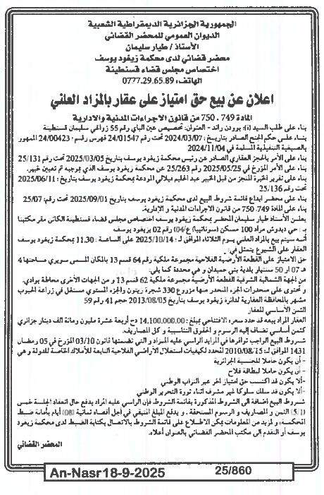 Il sera procédé à la vente au plus offrant et dernier enchérisseur le :