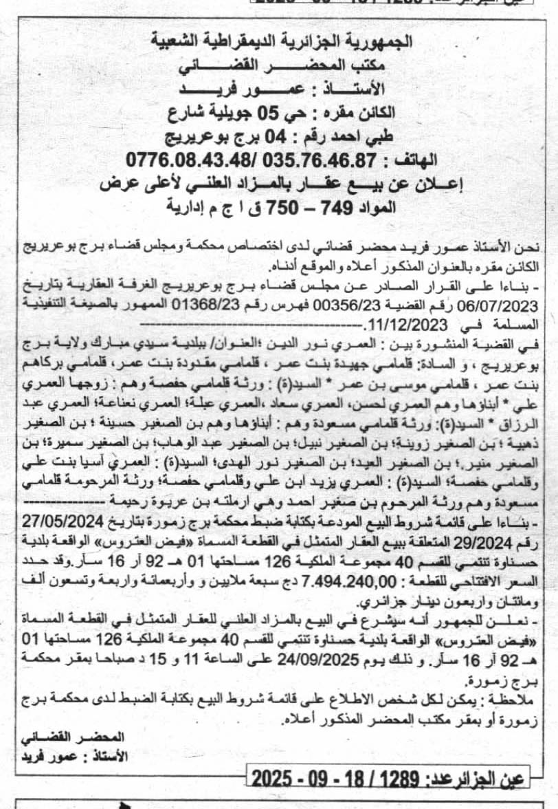 Il sera procédé à la vente au plus offrant et dernier enchérisseur le : 24/09/2025';