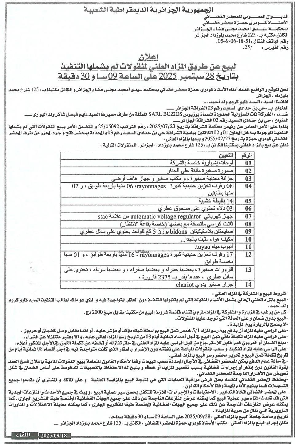 Il sera procédé à la vente au plus offrant et dernier enchérisseur le :