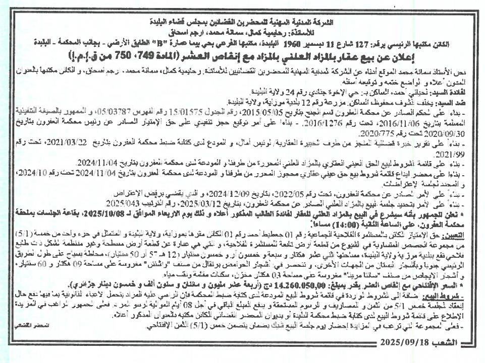 Il sera procédé à la vente au plus offrant et dernier enchérisseur le :