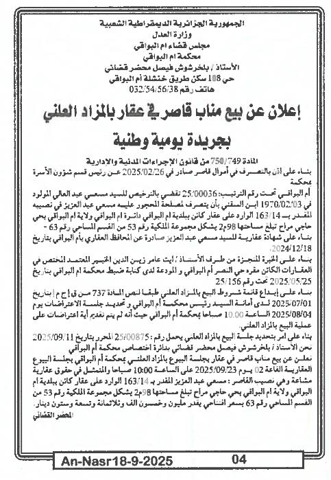 Il sera procédé à la vente au plus offrant et dernier enchérisseur le :