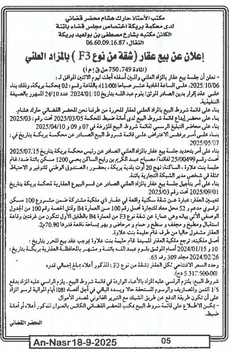 | Paru dans le journal : النصر | |