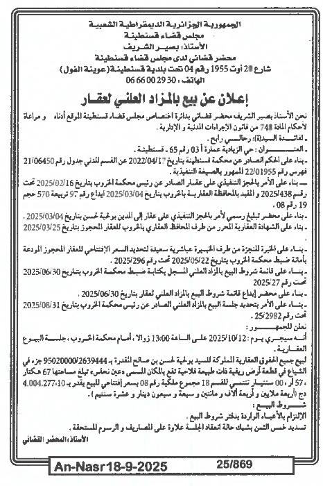 | Paru dans le journal : النصر | |