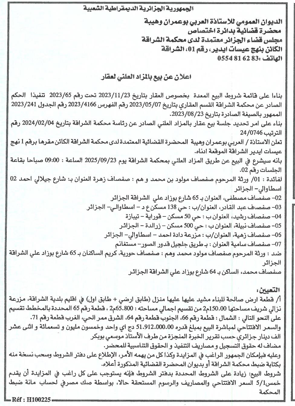 Il sera procédé à la vente au plus offrant et dernier enchérisseur le :