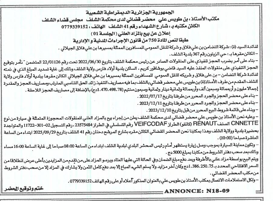 Il sera procédé à la vente au plus offrant et dernier enchérisseur le :