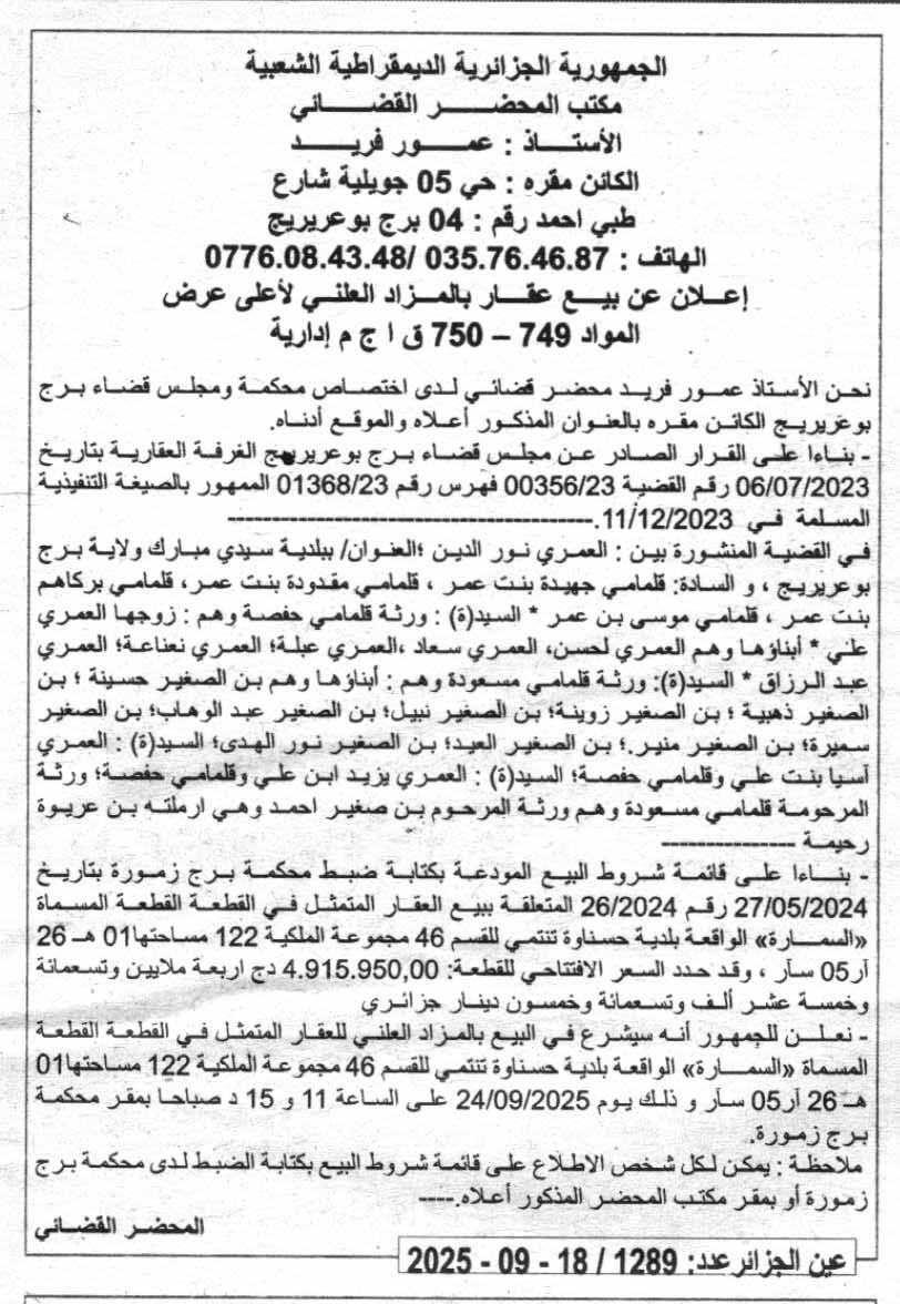 Il sera procédé à la vente au plus offrant et dernier enchérisseur le :