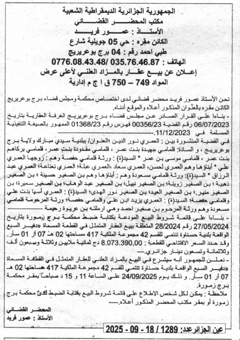 Il sera procédé à la vente au plus offrant et dernier enchérisseur le :