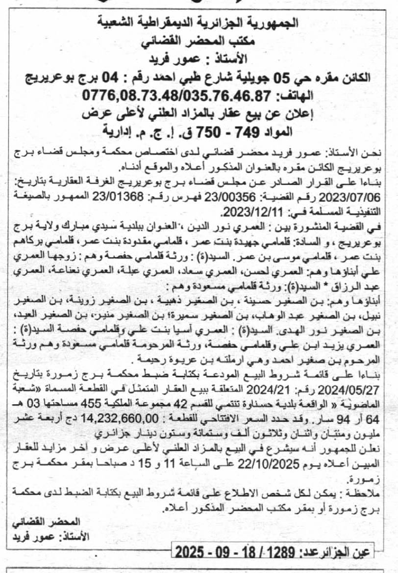 | Paru dans le journal : عين الجزائر | |