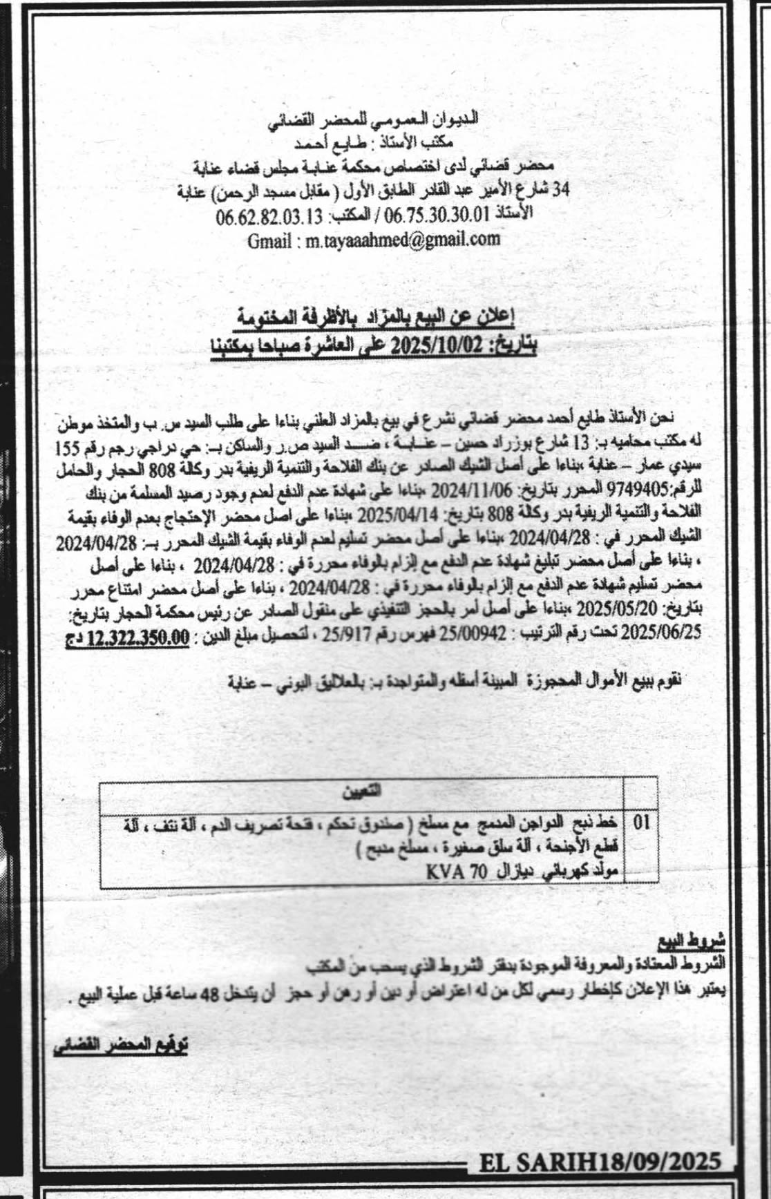 Il sera procédé à la vente au plus offrant et dernier enchérisseur le :