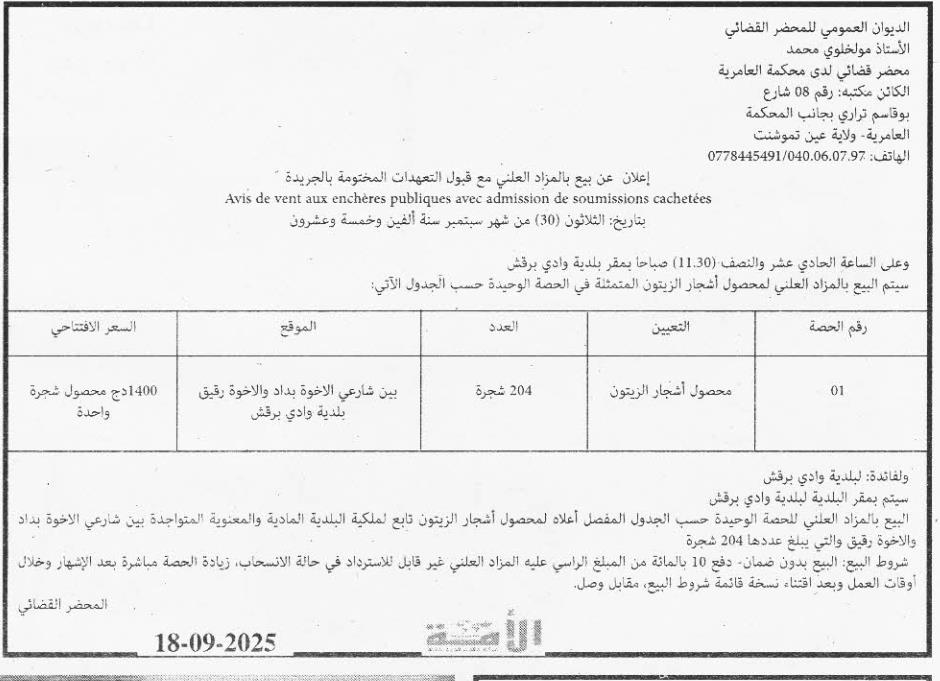 Il sera procédé à la vente au plus offrant et dernier enchérisseur le :