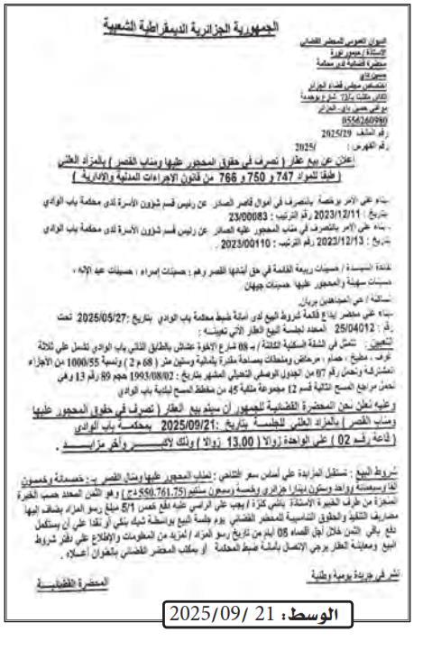 Il sera procédé à la vente au plus offrant et dernier enchérisseur le :