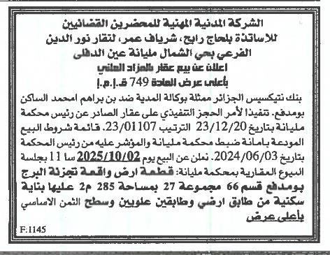 Il sera procédé à la vente au plus offrant et dernier enchérisseur le :