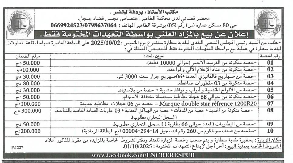 Il sera procédé à la vente au plus offrant et dernier enchérisseur le :
