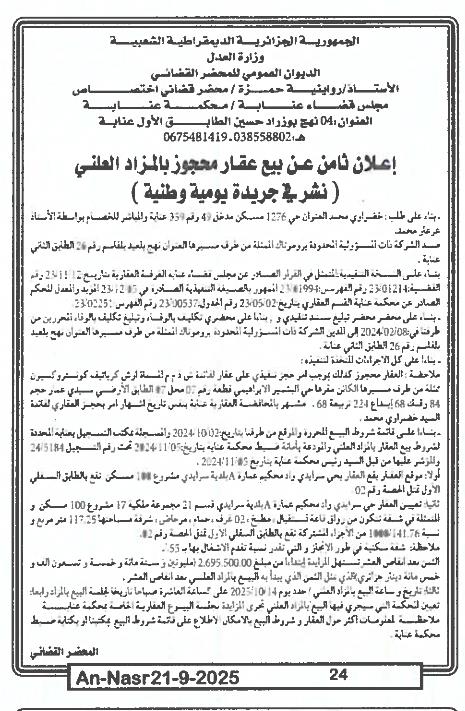 Il sera procédé à la vente au plus offrant et dernier enchérisseur le : 14/10/2025';