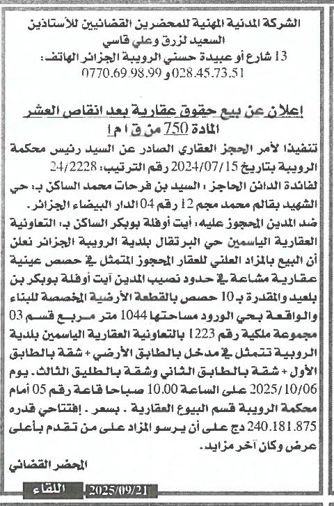 Il sera procédé à la vente au plus offrant et dernier enchérisseur le :
