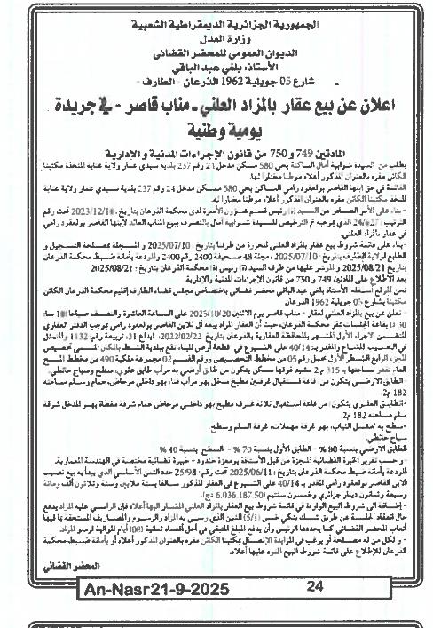 Il sera procédé à la vente au plus offrant et dernier enchérisseur le :