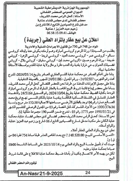 Il sera procédé à la vente au plus offrant et dernier enchérisseur le :