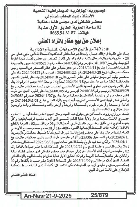 Il sera procédé à la vente au plus offrant et dernier enchérisseur le :