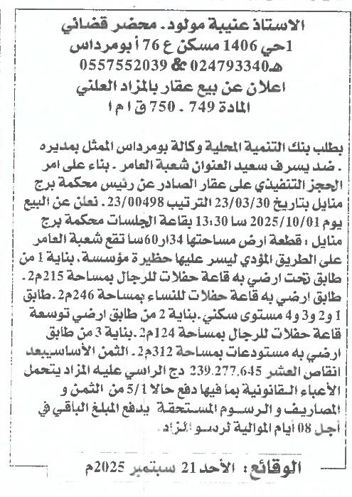 Il sera procédé à la vente au plus offrant et dernier enchérisseur le : 28/09/2025';