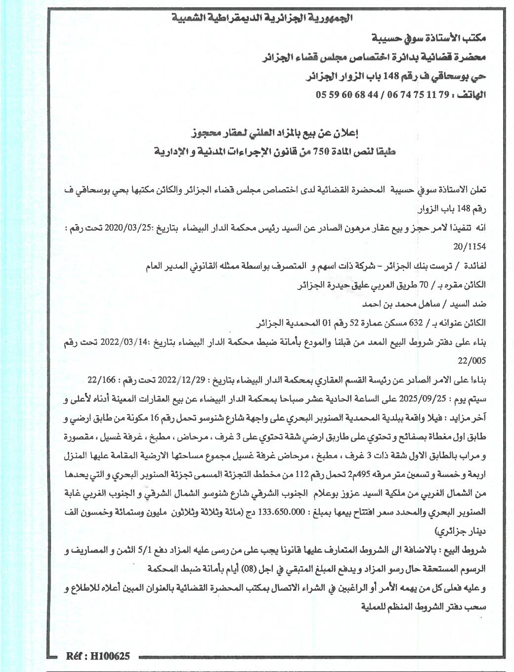 Il sera procédé à la vente au plus offrant et dernier enchérisseur le :