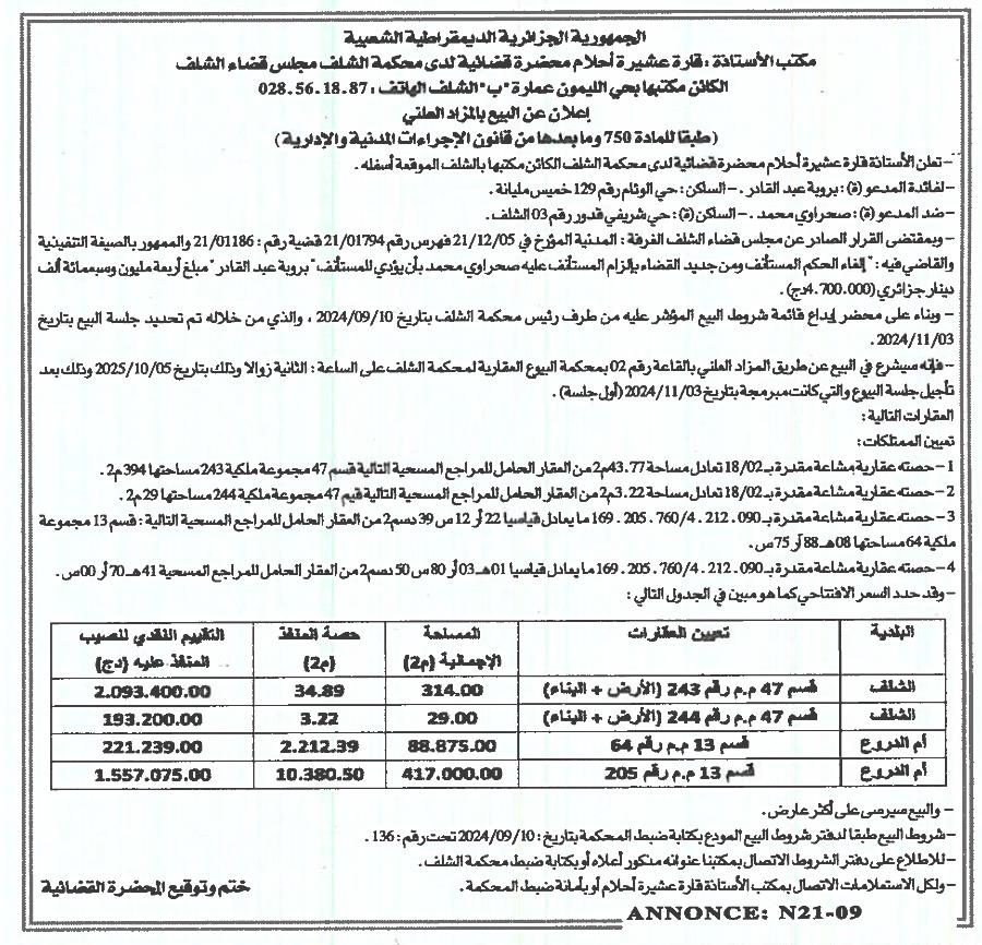 | Wilaya : Chlef | |